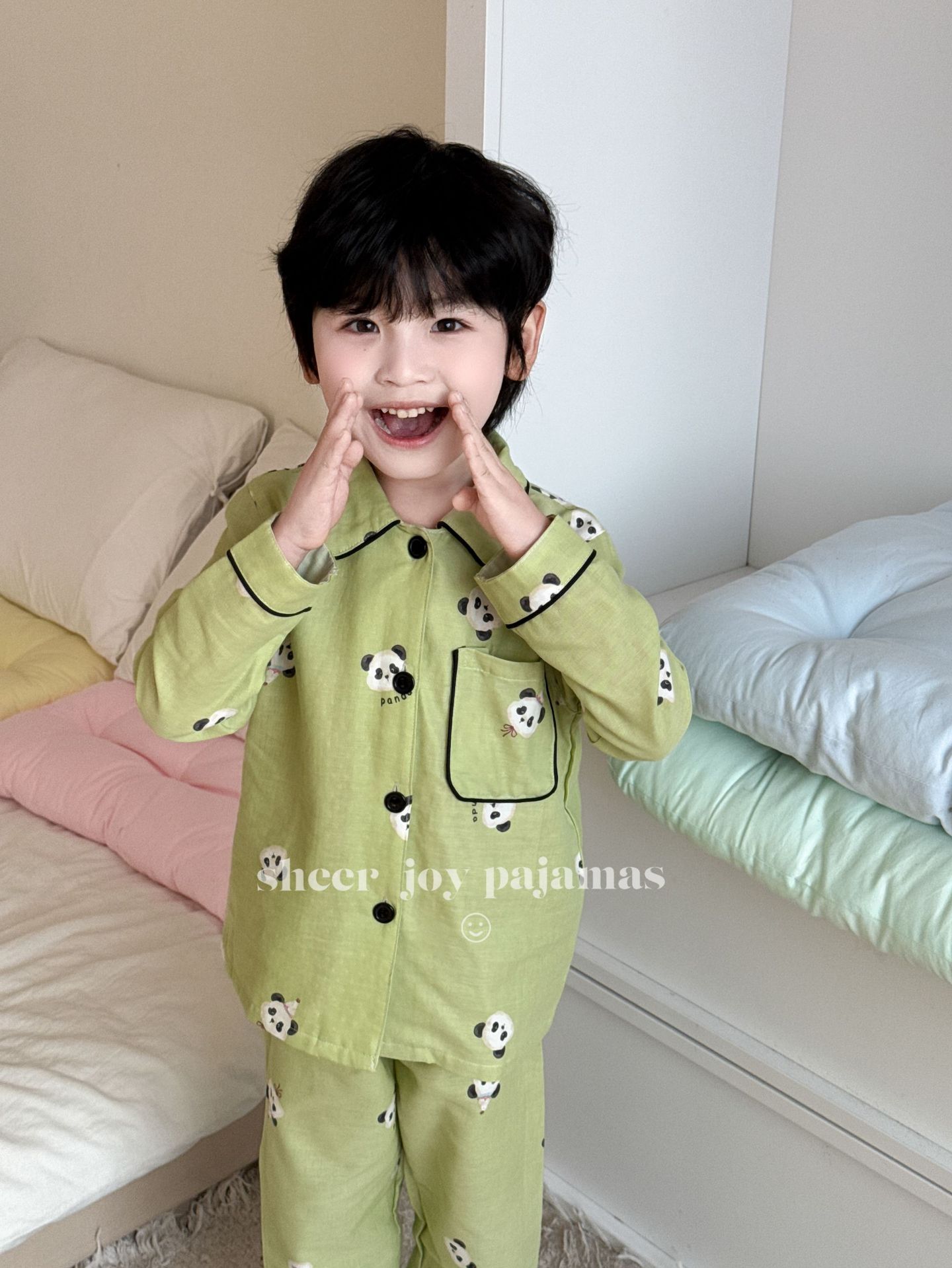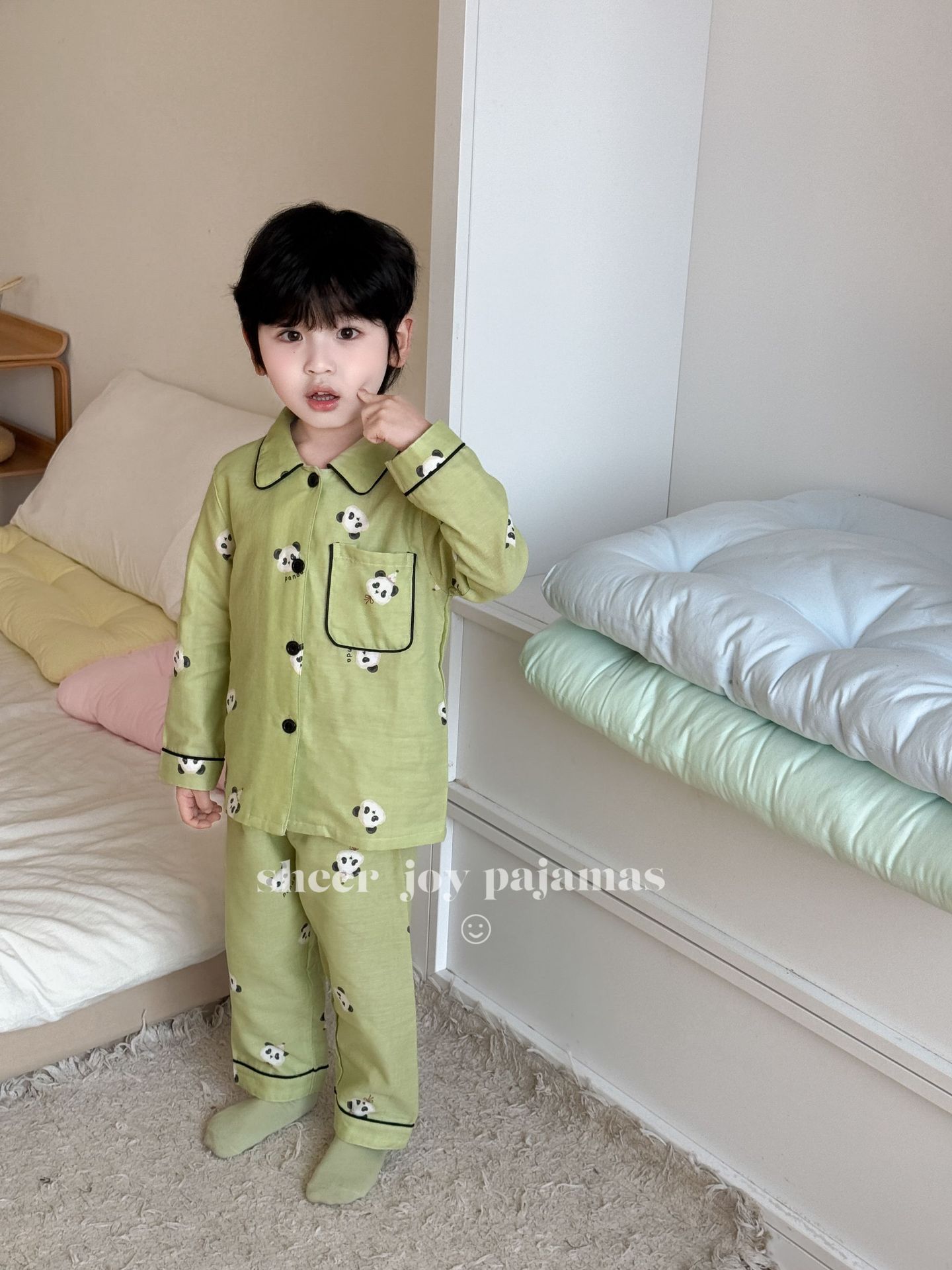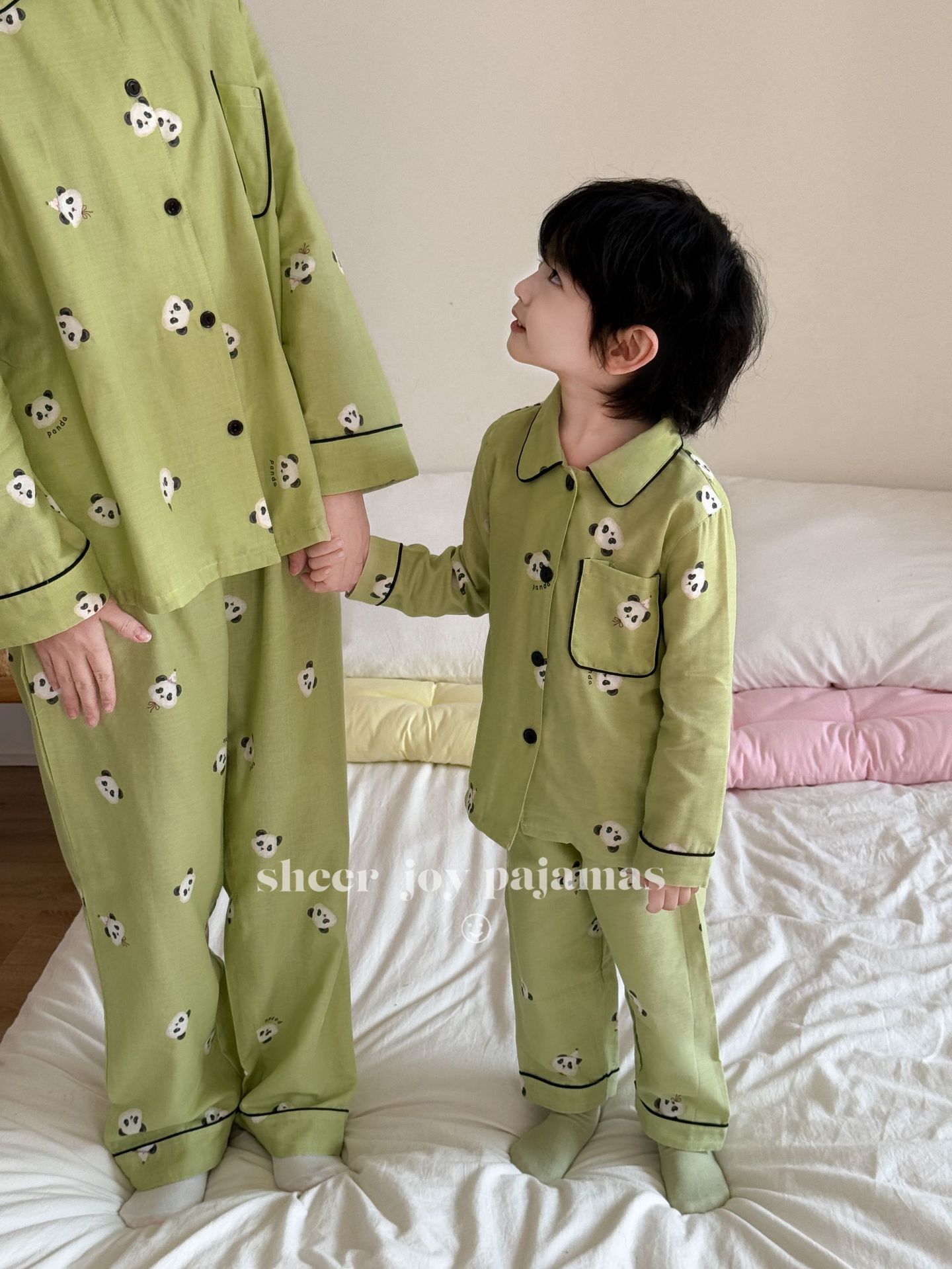 더블 레이어 원사 포인트 칼라 부모-어린이 긴팔 바지 홈 의류 소년 세트 팬더 보이스토어 가기