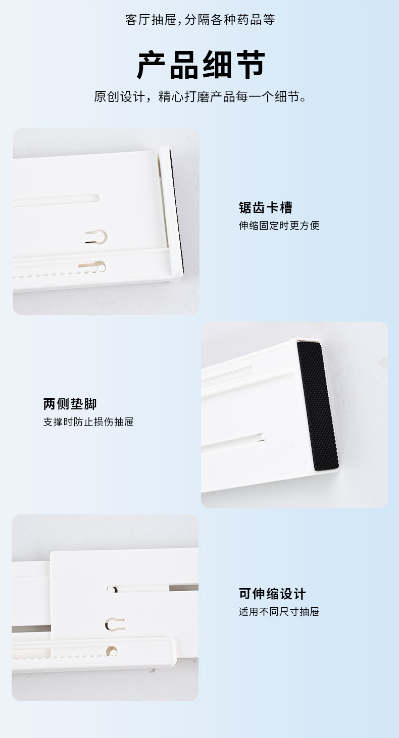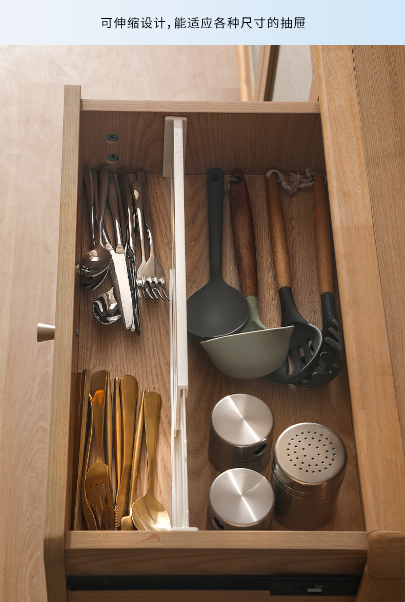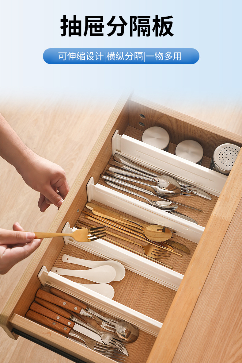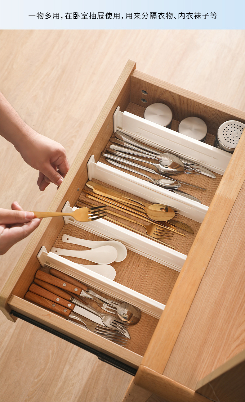 • 商品名称:日式可伸缩抽屉分隔板 横纵两用抽屉隔板 大号高9.5CM--白色(9037)