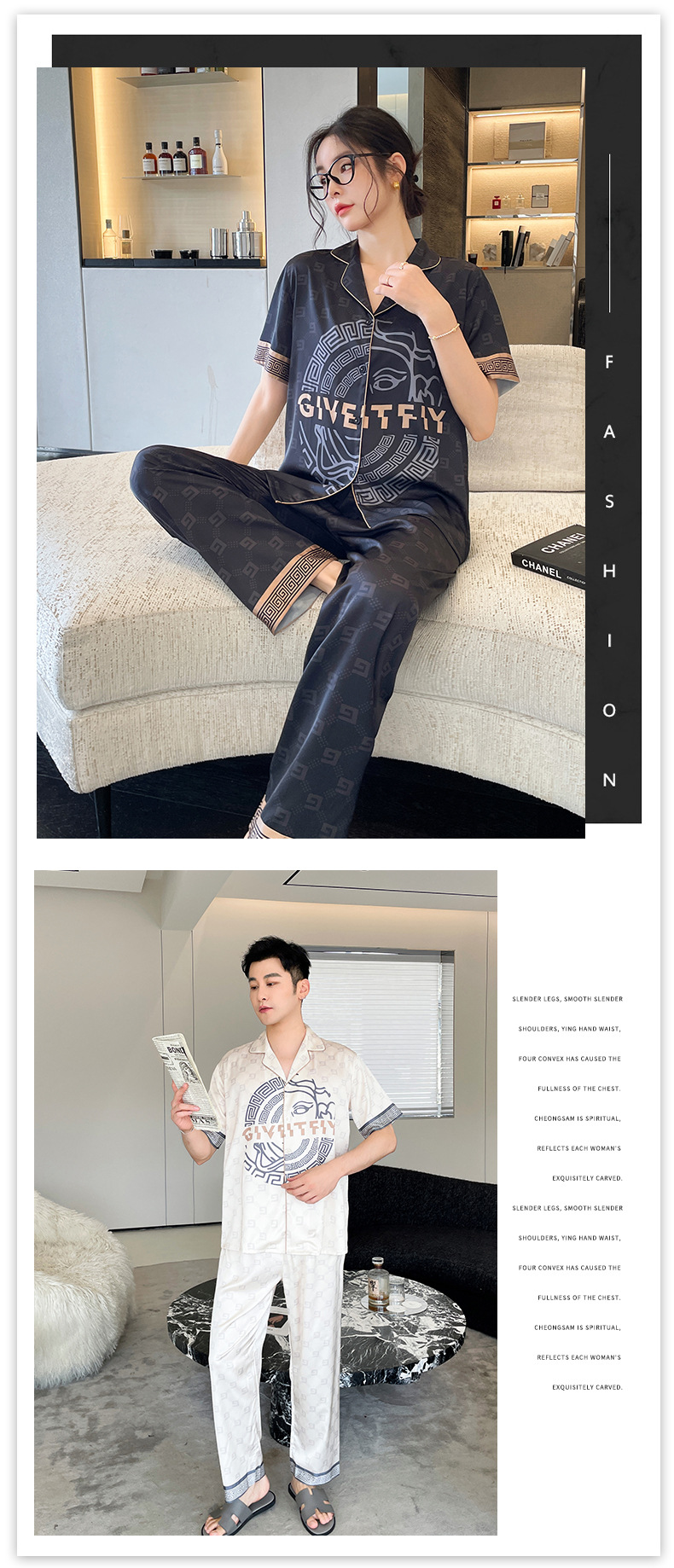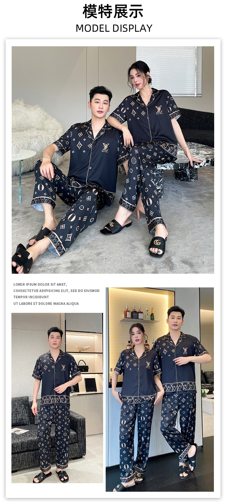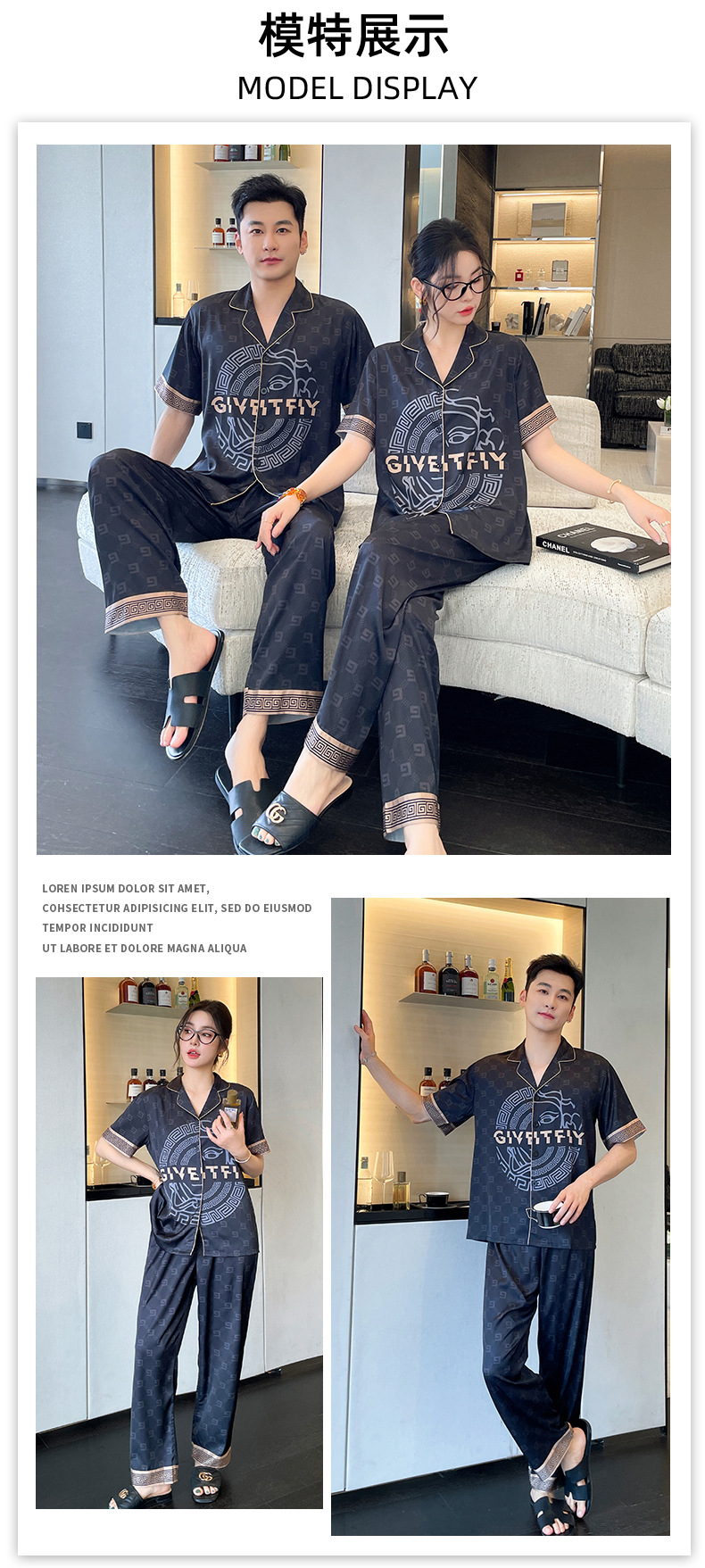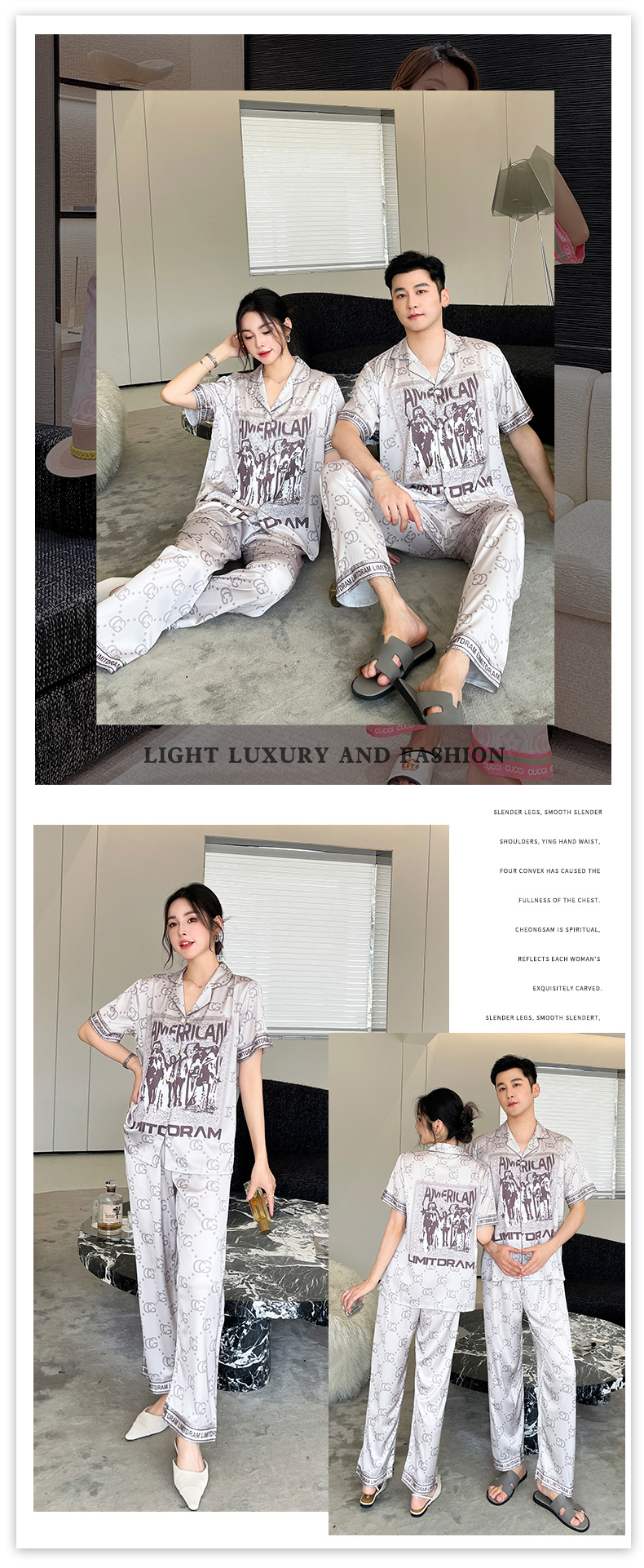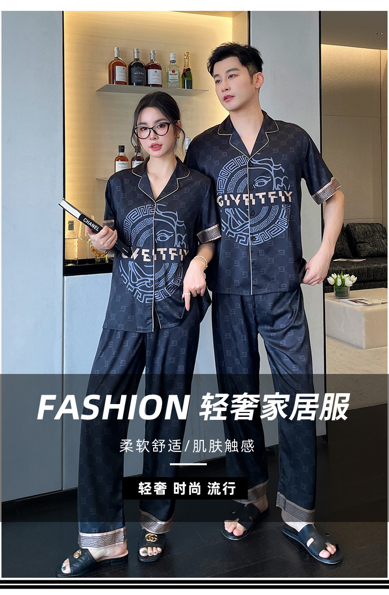 소스 공장 제품 2025 연인 아이스 실크 잠옷 여성 봄과 가을 짧은 소매 플러스 사이즈 옷깃 카디건 세트 그물 레드 라이브스토어 가기