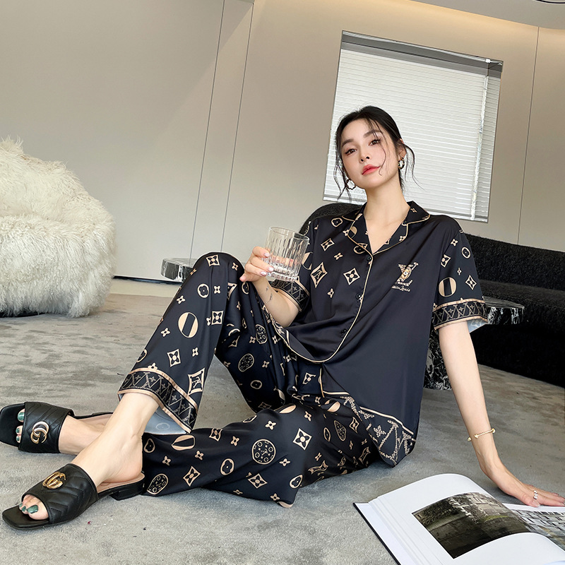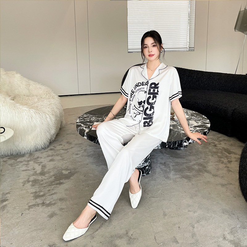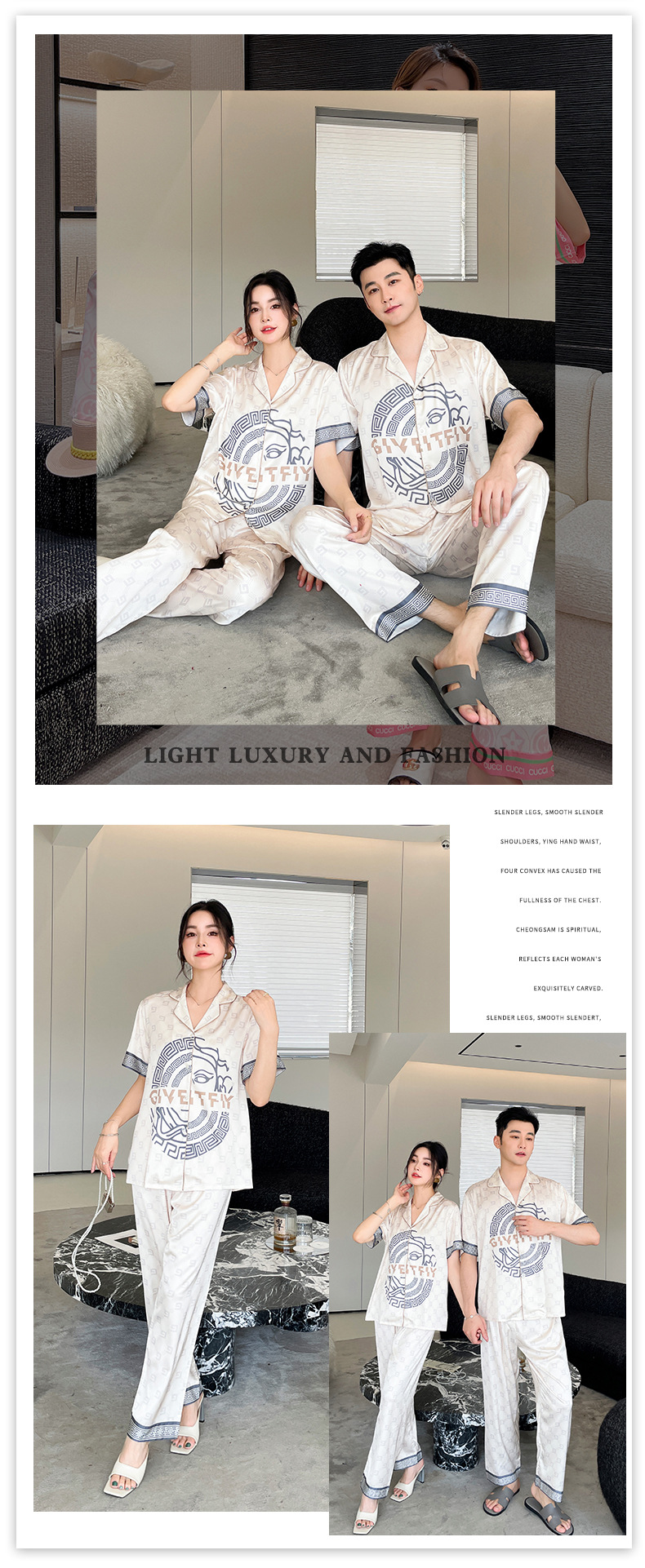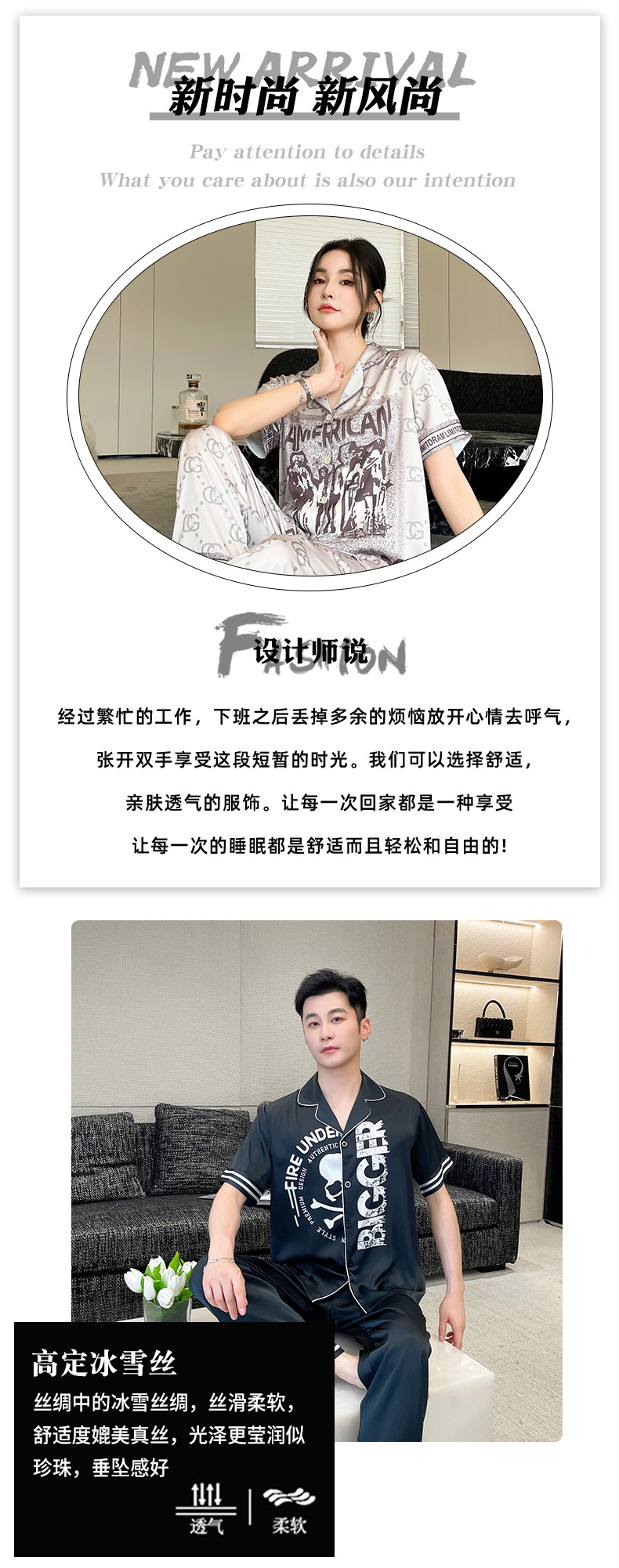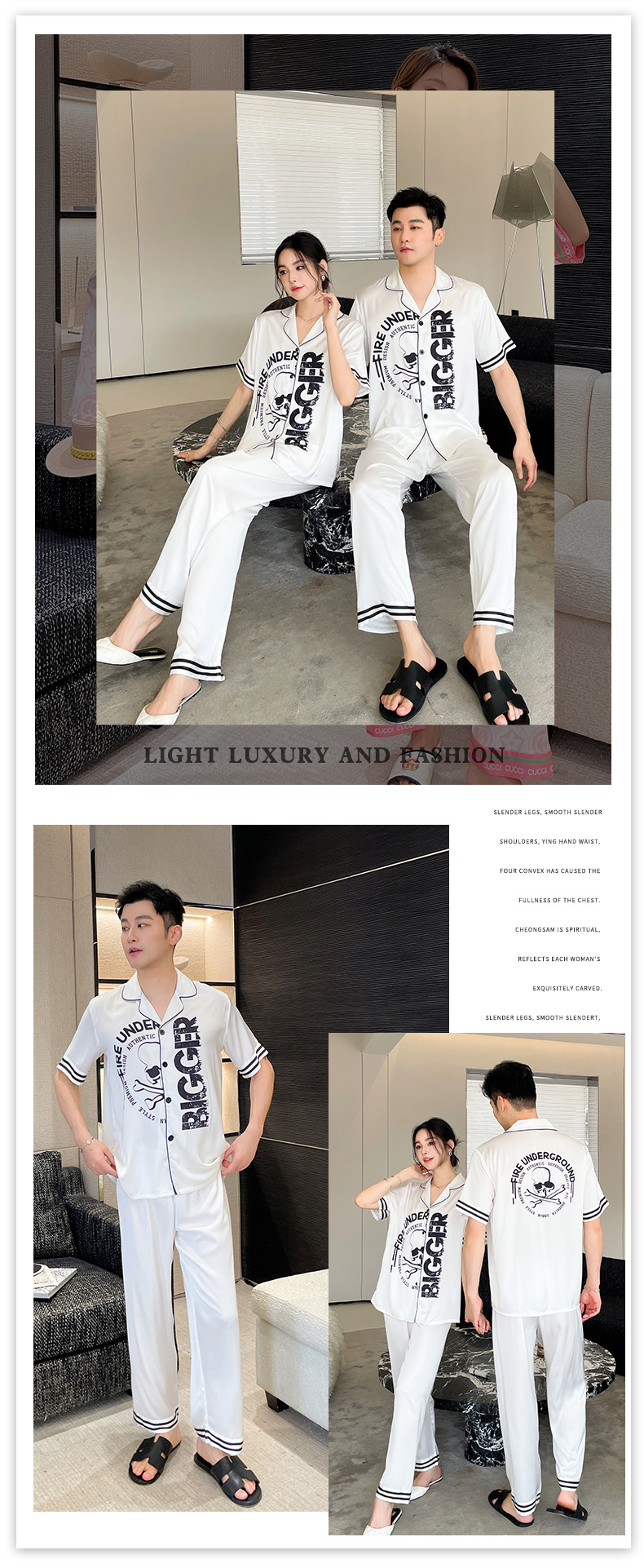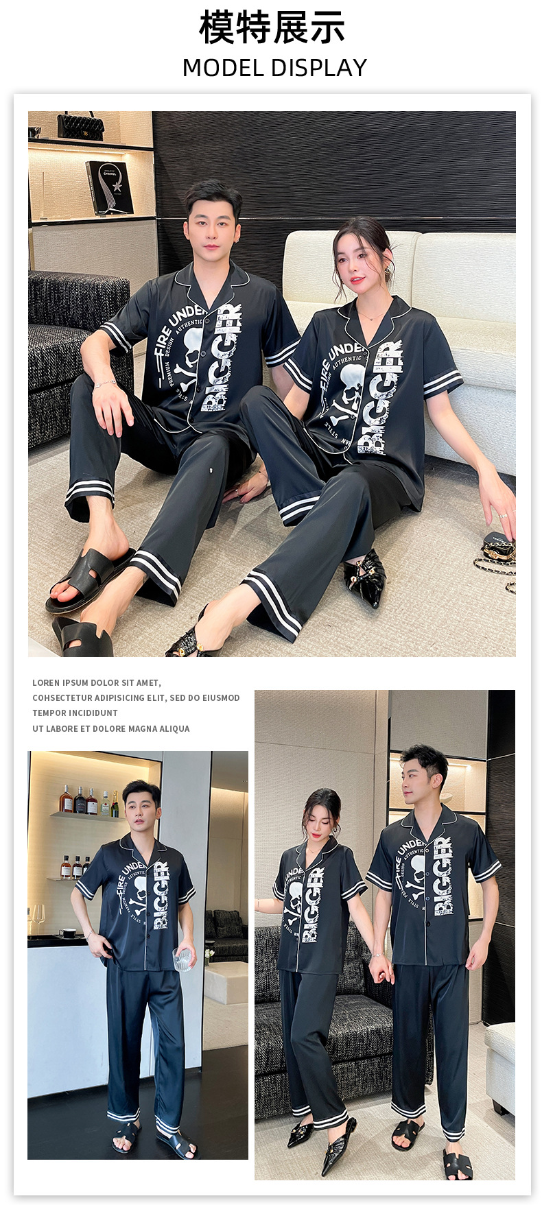 소스 공장 제품 2025 연인 아이스 실크 잠옷 여성 봄과 가을 짧은 소매 플러스 사이즈 옷깃 카디건 세트 그물 레드 라이브스토어 가기