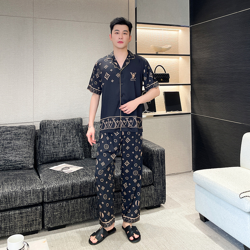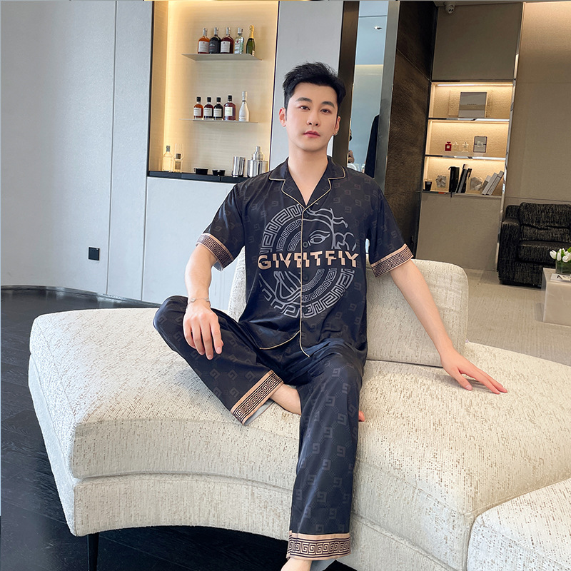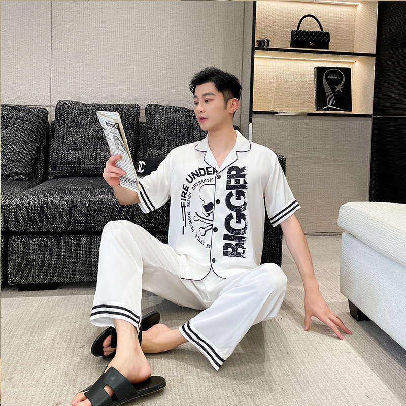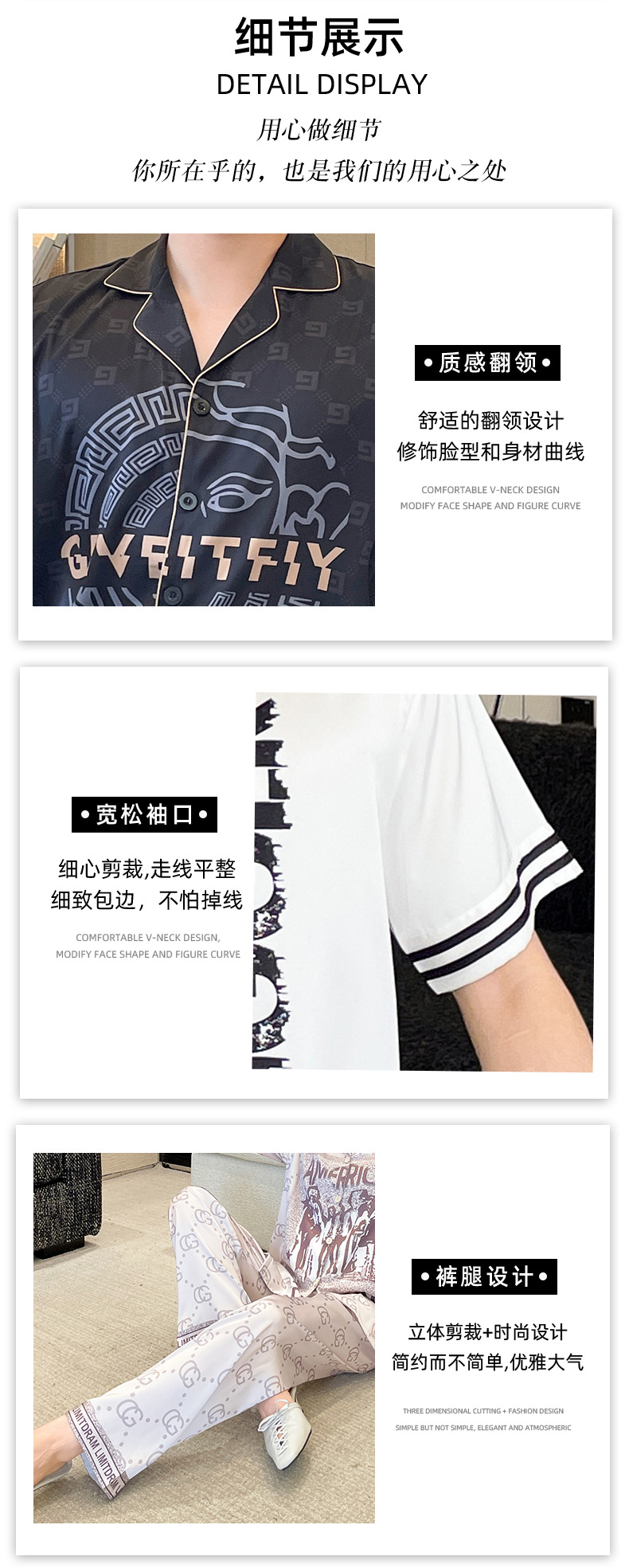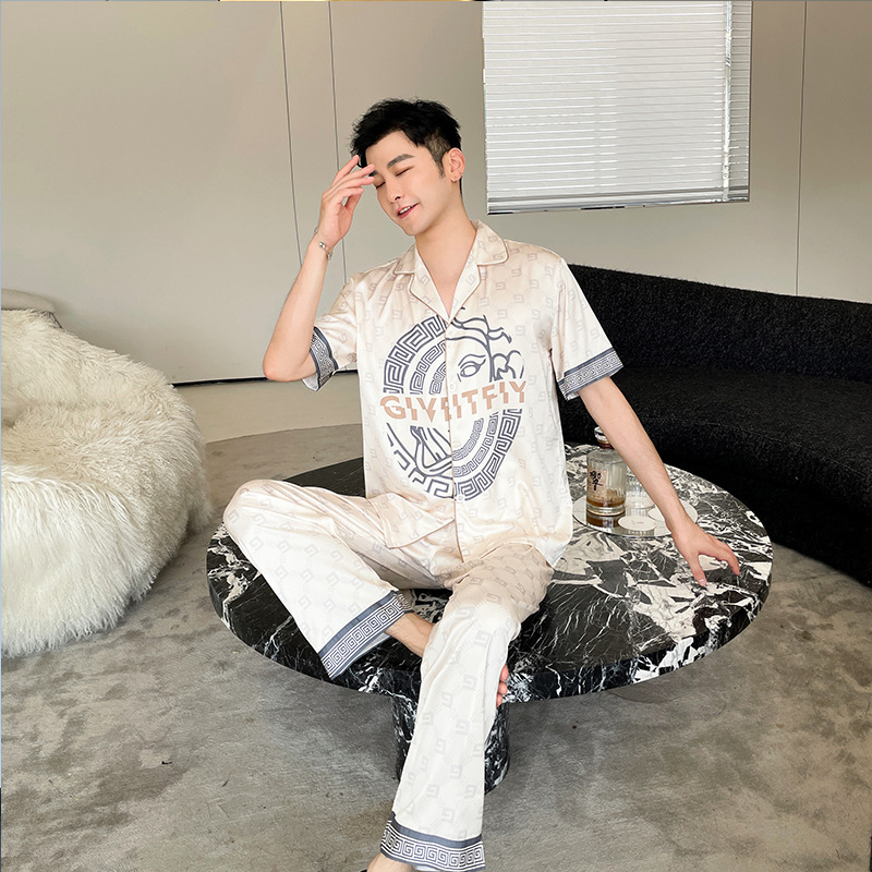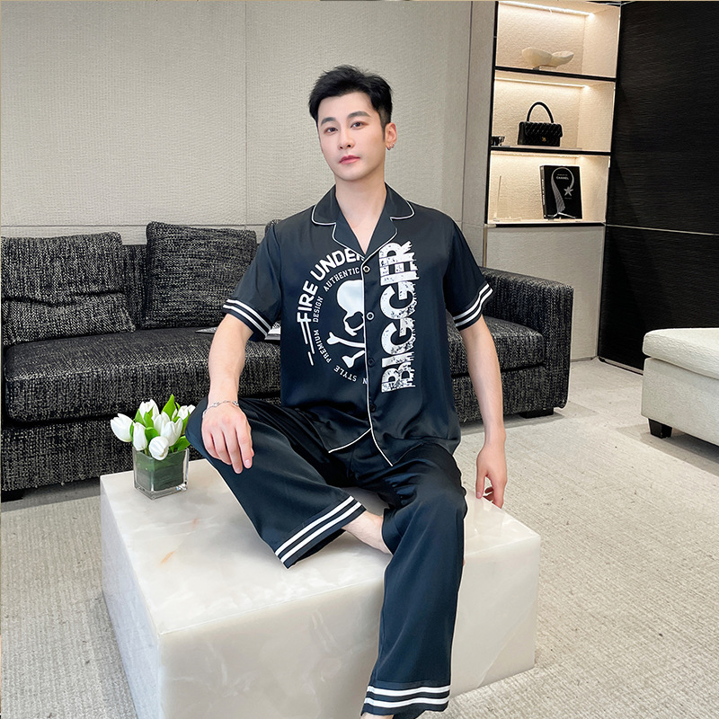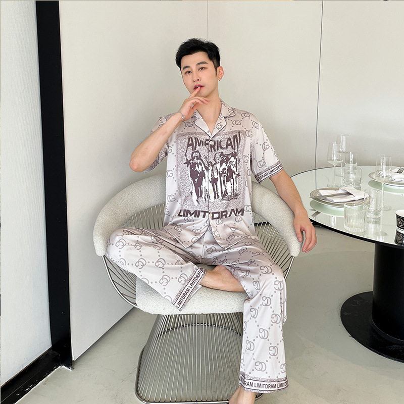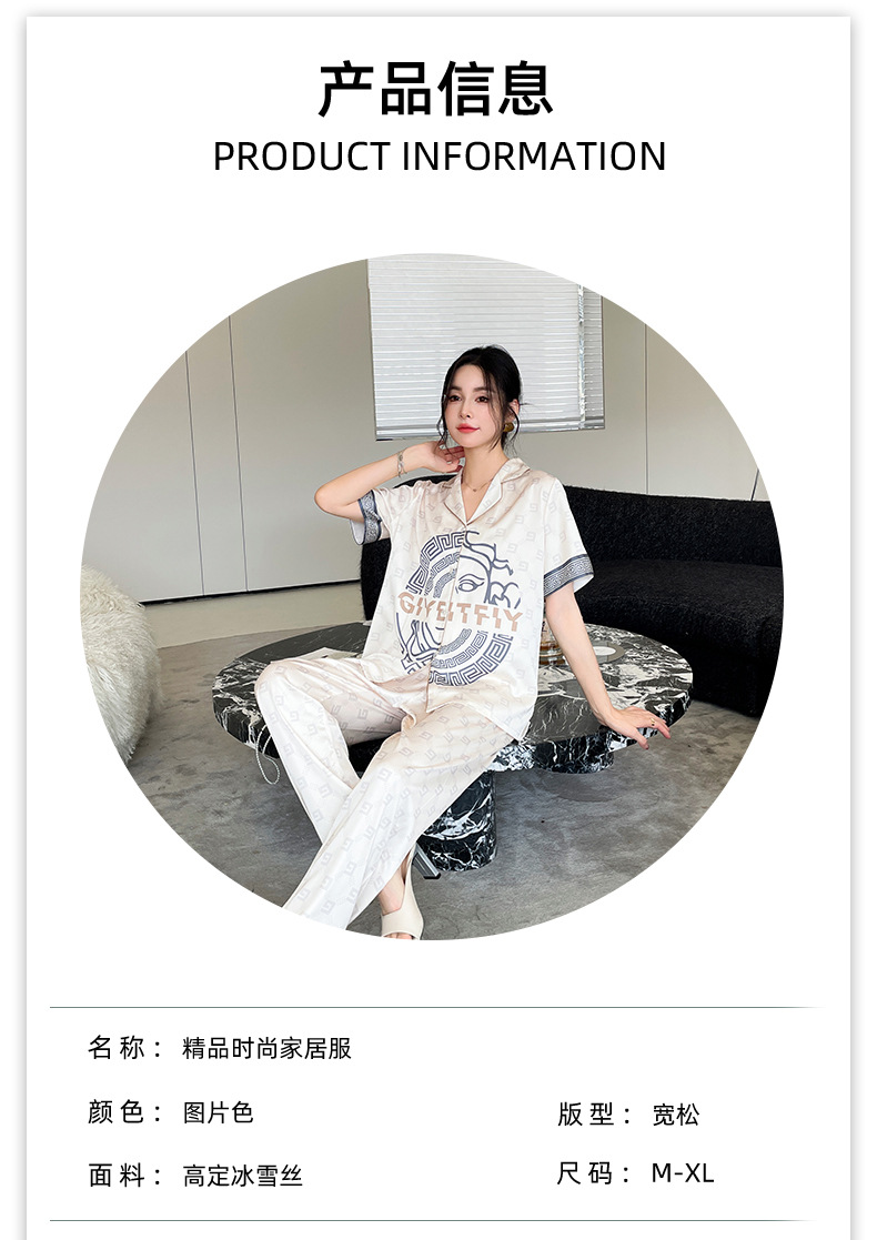 소스 공장 제품 2025 연인 아이스 실크 잠옷 여성 봄과 가을 짧은 소매 플러스 사이즈 옷깃 카디건 세트 그물 레드 라이브스토어 가기