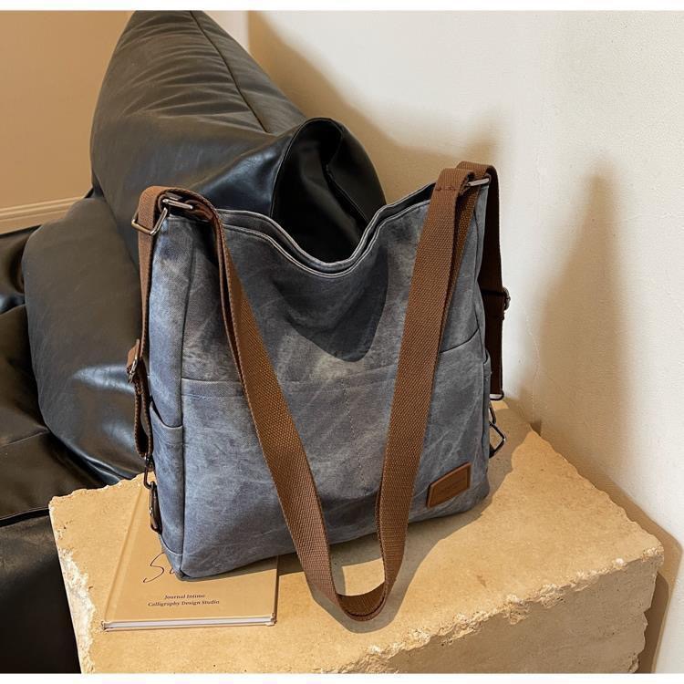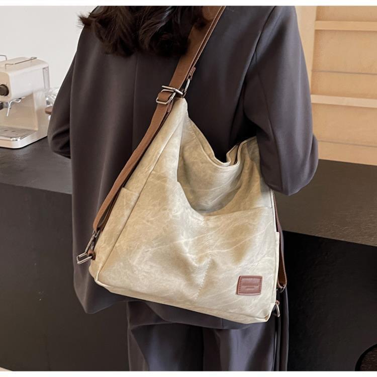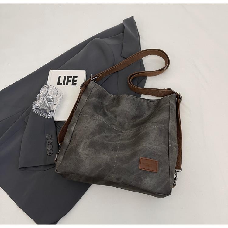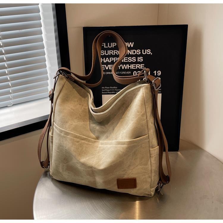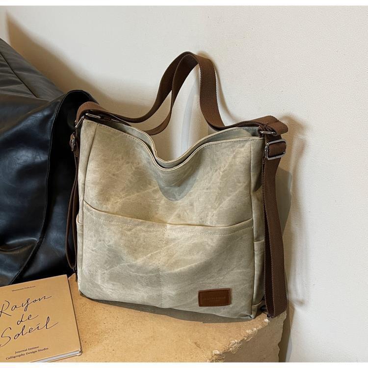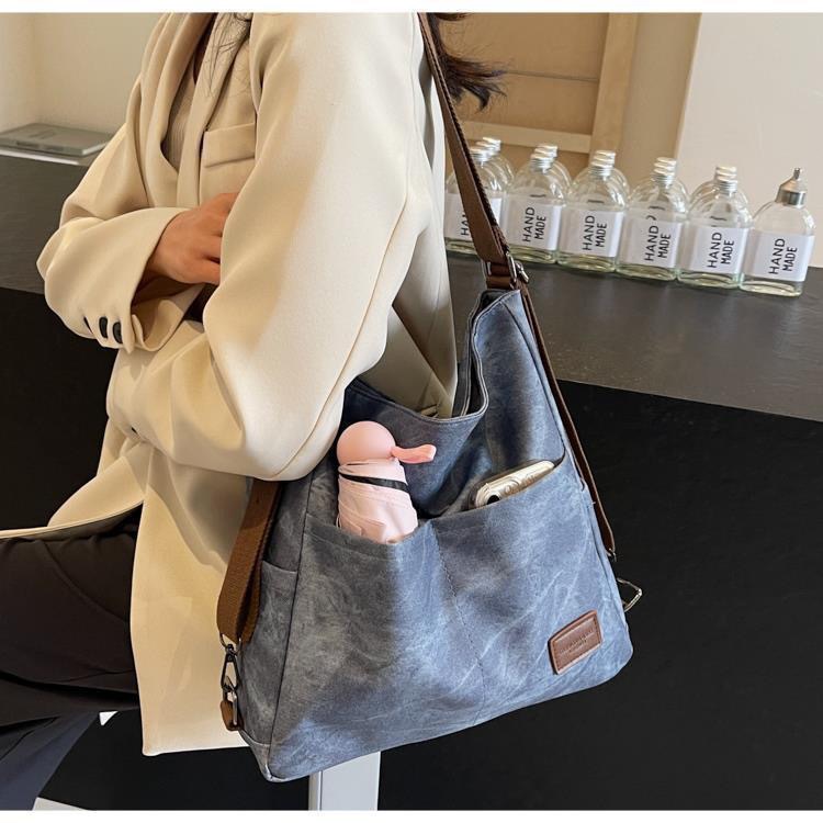 유행 올 매치 2025 새로운 대용량 토트 백 빈티지 캔버스 가방 여성 대학생 간단한 원 숄더 언더암 가방스토어 가기