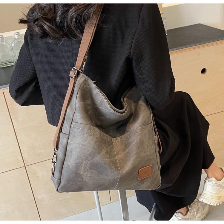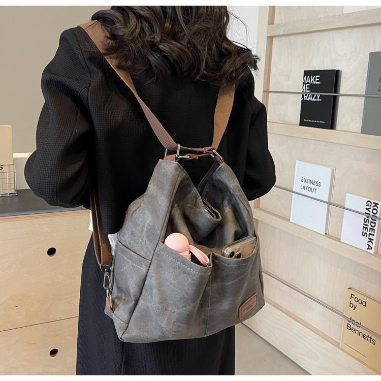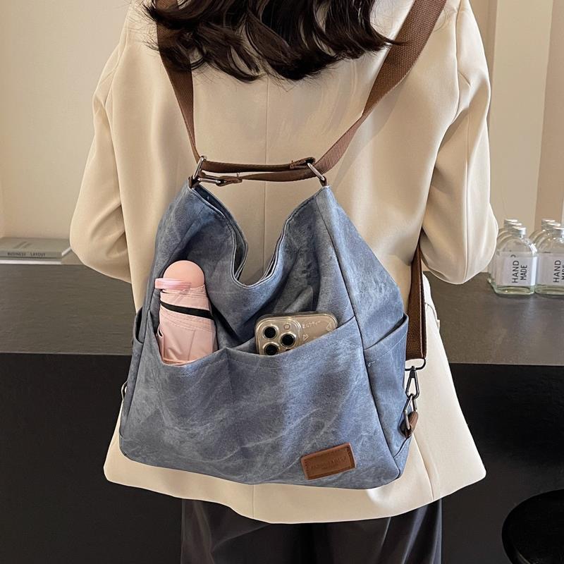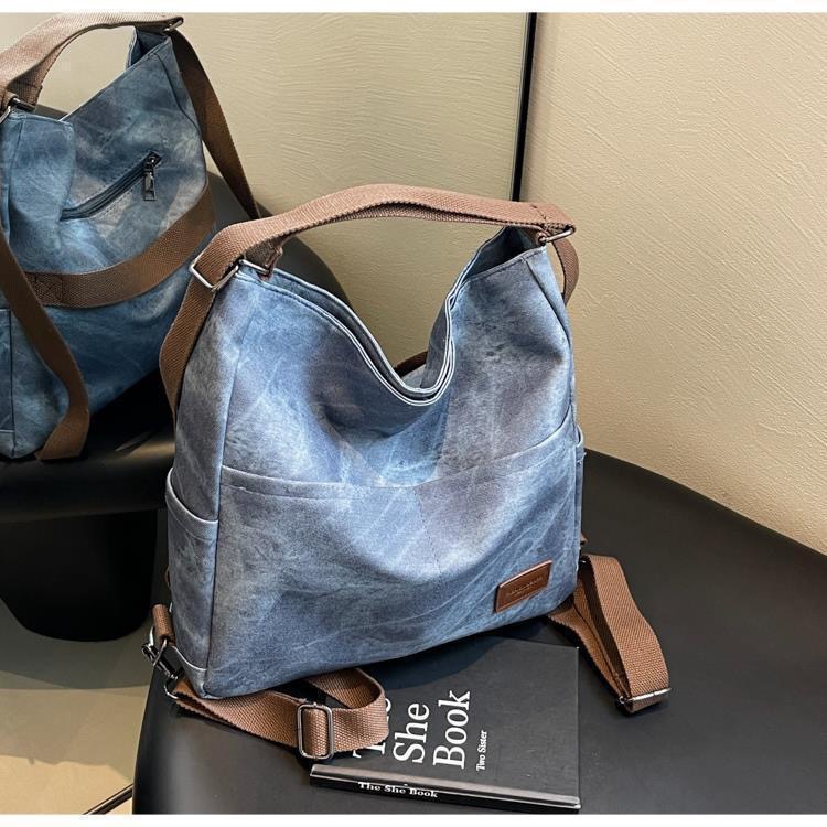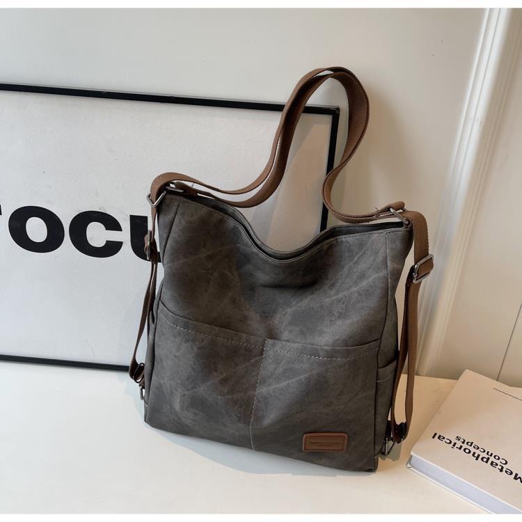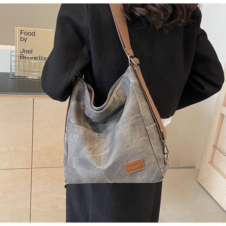 유행 올 매치 2025 새로운 대용량 토트 백 빈티지 캔버스 가방 여성 대학생 간단한 원 숄더 언더암 가방스토어 가기