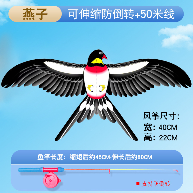 작은 연 바람 쉬운 비행 휴대용 낚싯대 어린이 특수 동적 제비 2025 새로운 미니 조류스토어 가기