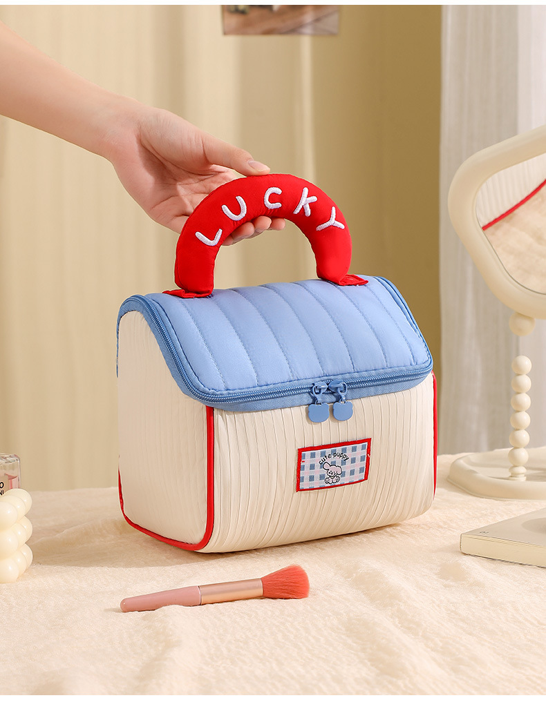 작은 집 화장품 가방 대용량 귀여운 만화 저장 가방 스킨 케어 제품 세탁 가방 아기 1 년 된 손 선물 상자