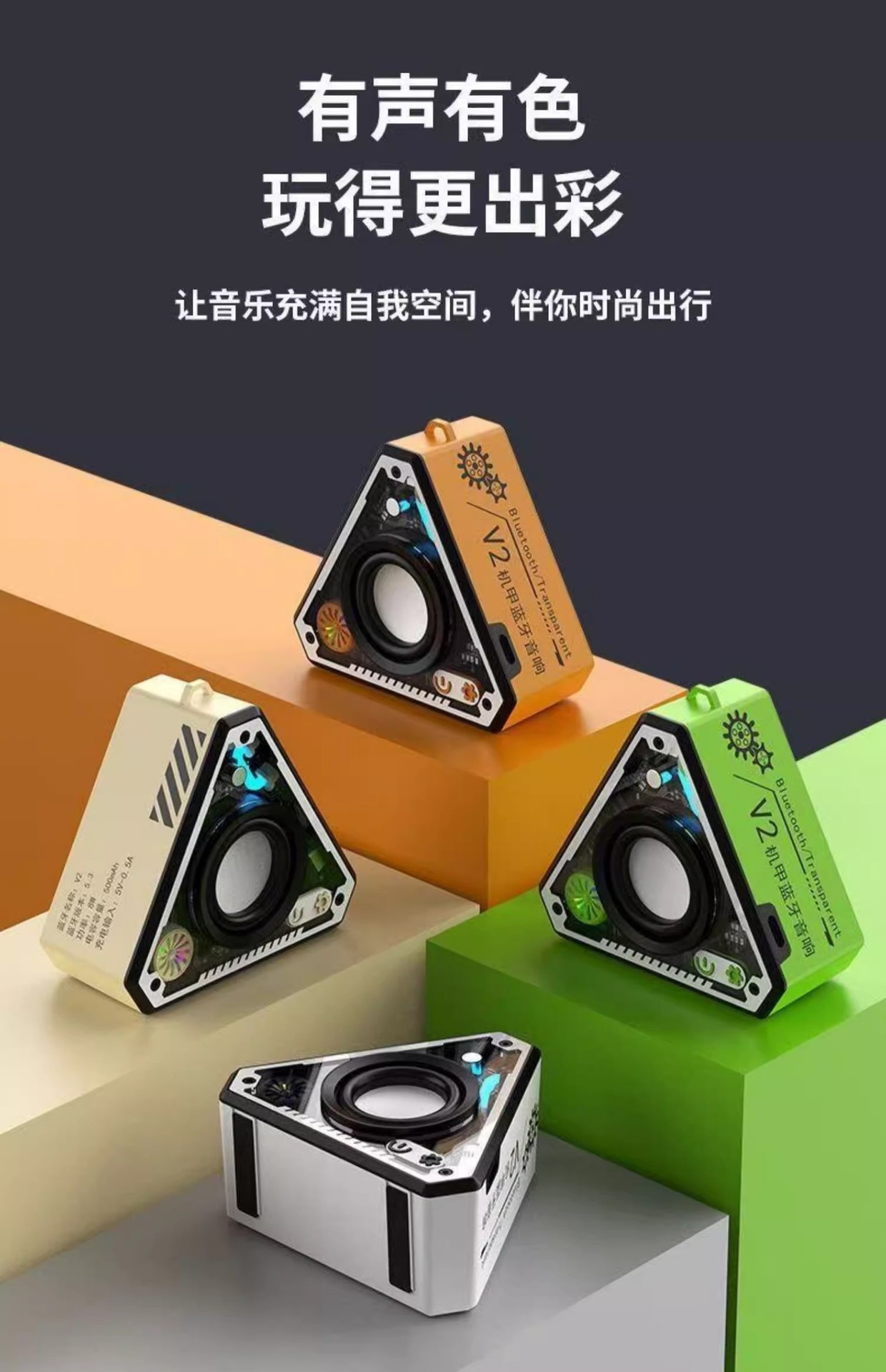 V2 크로스보더 메카 스타일 블루투스 스피커 화려한 분위기 조명 서브우퍼 휴대용 오디오 미니 고급스러운 디자인 중저음 강화스토어 가기