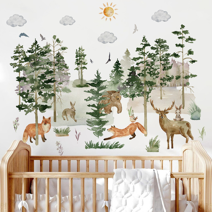 BR1208H 원시 숲 동물 만화 자기 접착 벽 스티커 침실 거실 어린이 방 장식 스티커스토어 가기