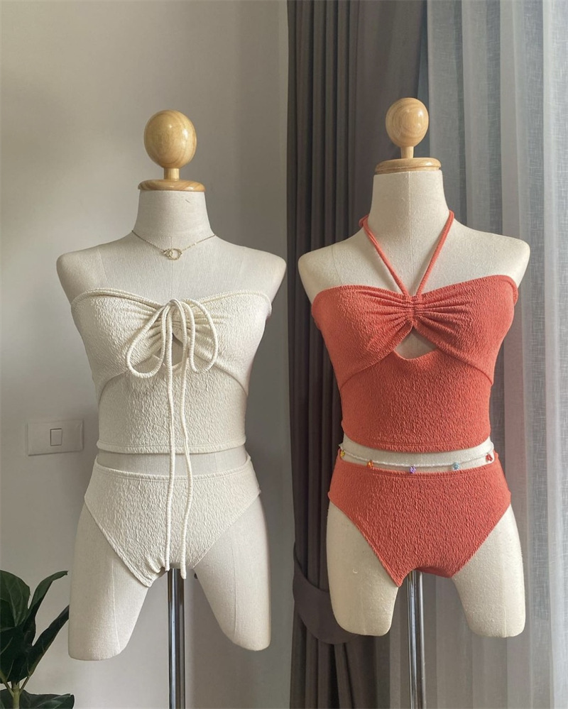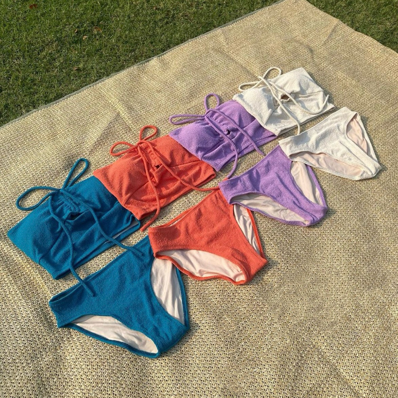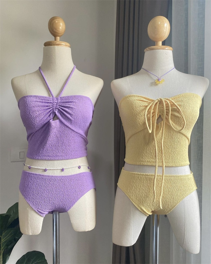 8 색] 한국 인 스타일 하이 엔드 순수 욕망 작은 향수 스타일 소녀 간단한 작은 가슴 매달려 목 분할 수영복 여성