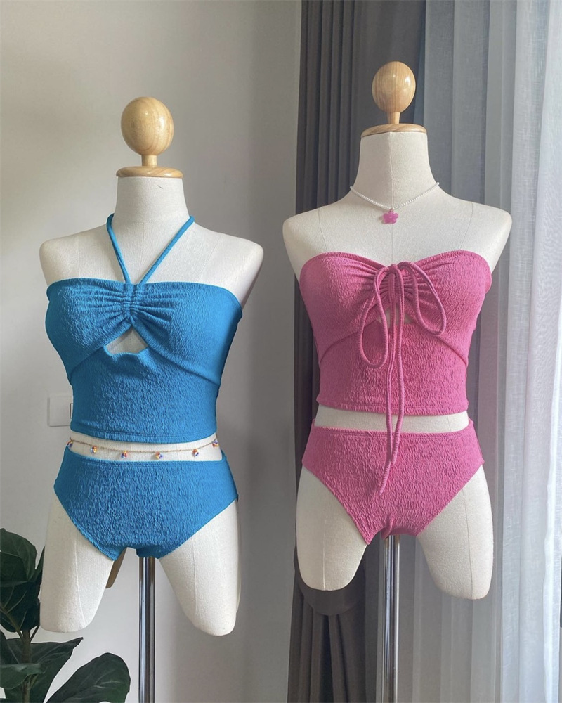 8 색] 한국 인 스타일 하이 엔드 순수 욕망 작은 향수 스타일 소녀 간단한 작은 가슴 매달려 목 분할 수영복 여성스토어 가기