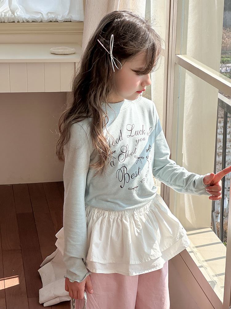 엘모 베이 베이 소녀 세련된 P 커튼 어린이 한국 스타일 레이어드 스커트 더블 레이어 편지 작은 방귀 커튼 트렌디스토어 가기