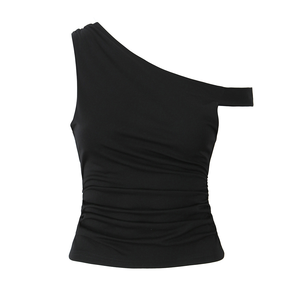 1556-유럽과 미국 스타일의 패션 어깨 대각선 칼라 조커 티셔츠 여성의 2025 새로운 섹시한 슬림베이스 셔츠 탑