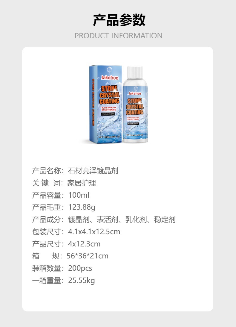 Jakehoe Stone Brightening Crystal Plating Agent Kitchen Quartz 스톤 타일 카운터 탑 스크래치 청소 얼룩 밝기스토어 가기