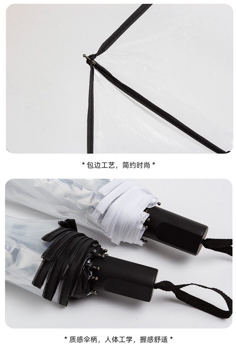 투명 우산, 완전 자동, 인스 스타일, 두꺼운 방풍, 인터넷 인기 사진 촬영용 접이식 우산, 광고 로고 인쇄 가능 우산