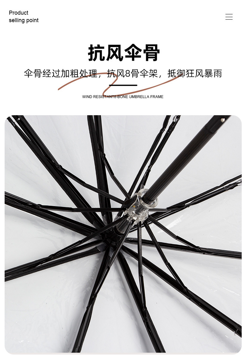 투명 우산, 완전 자동, 인스 스타일, 두꺼운 방풍, 인터넷 인기 사진 촬영용 접이식 우산, 광고 로고 인쇄 가능 우산스토어 가기
