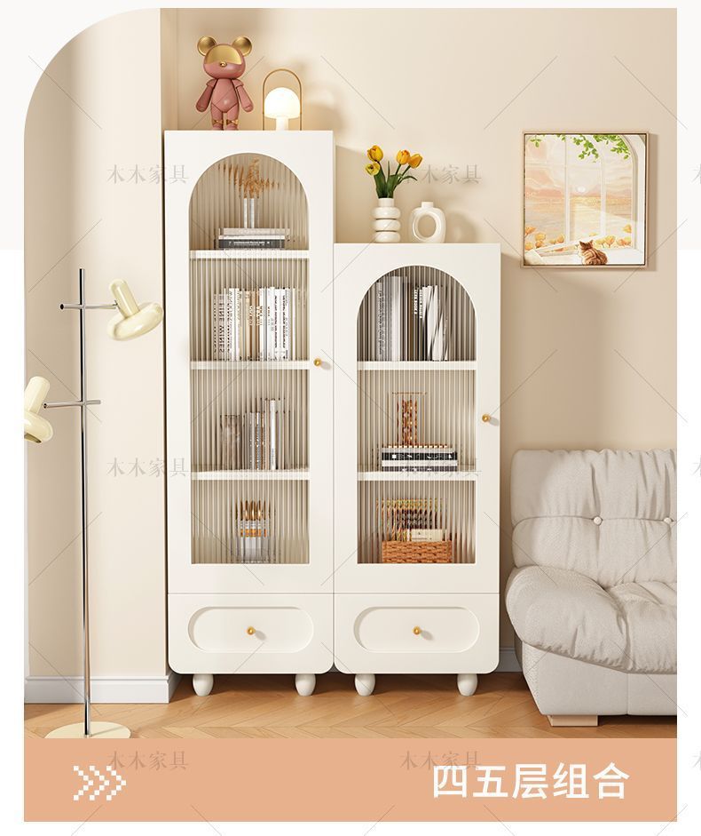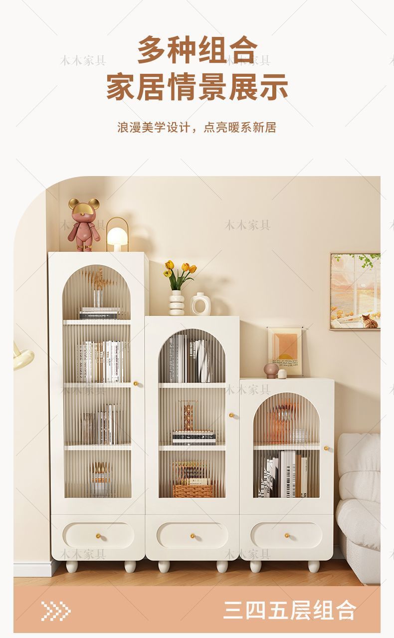 단단한 나무 책장 책장 홈 바닥 벽 캐비닛 사물함 크림 스타일 거실 저장 캐비닛 다층 파일 캐비닛