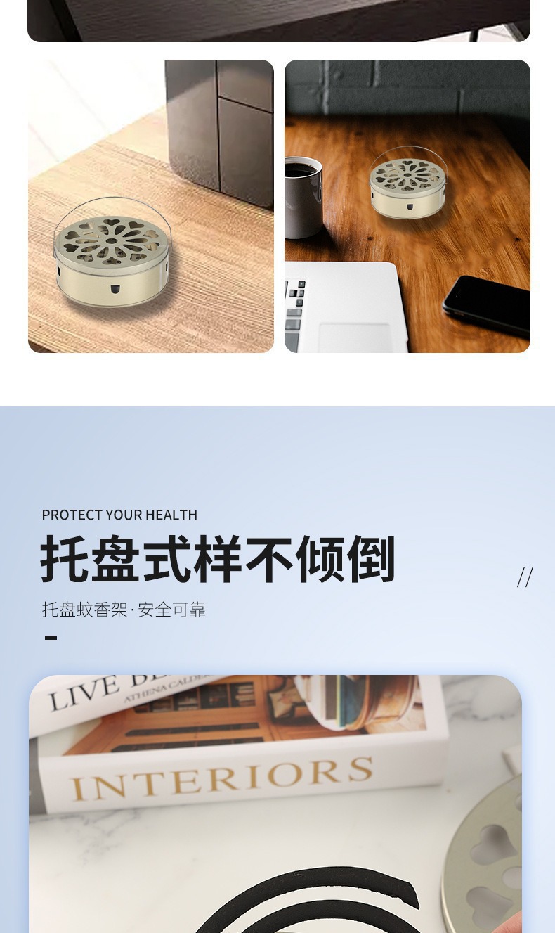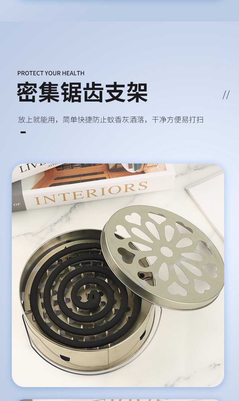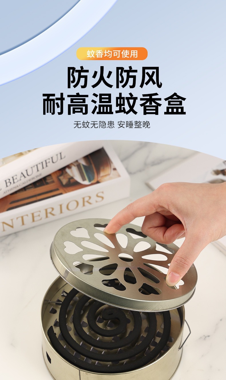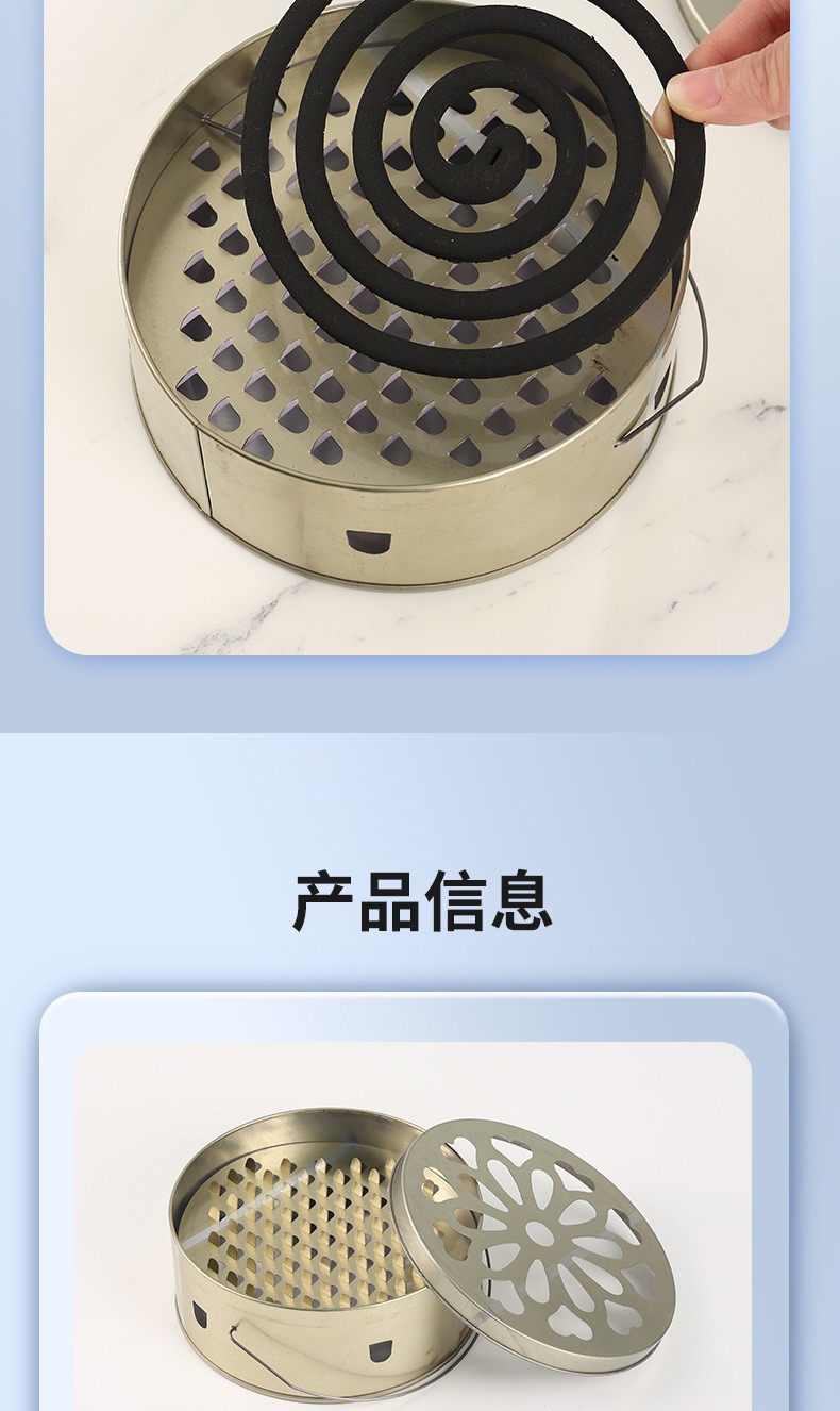 창조적 인 방화 모기 향 상자 트레이 뚜껑 휴대용 내화 회색 상자 모기 향 브래킷을 가진 가정용 샌달 우드 상자