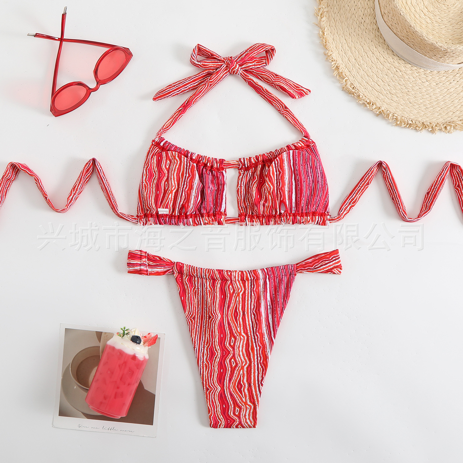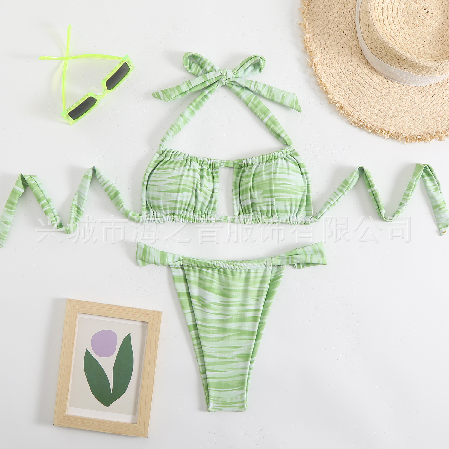 2025 새로운 아마존 새로운 인쇄 분할 여성의 섹시한 스트랩 목 비키니 대외 무역 폭발스토어 가기