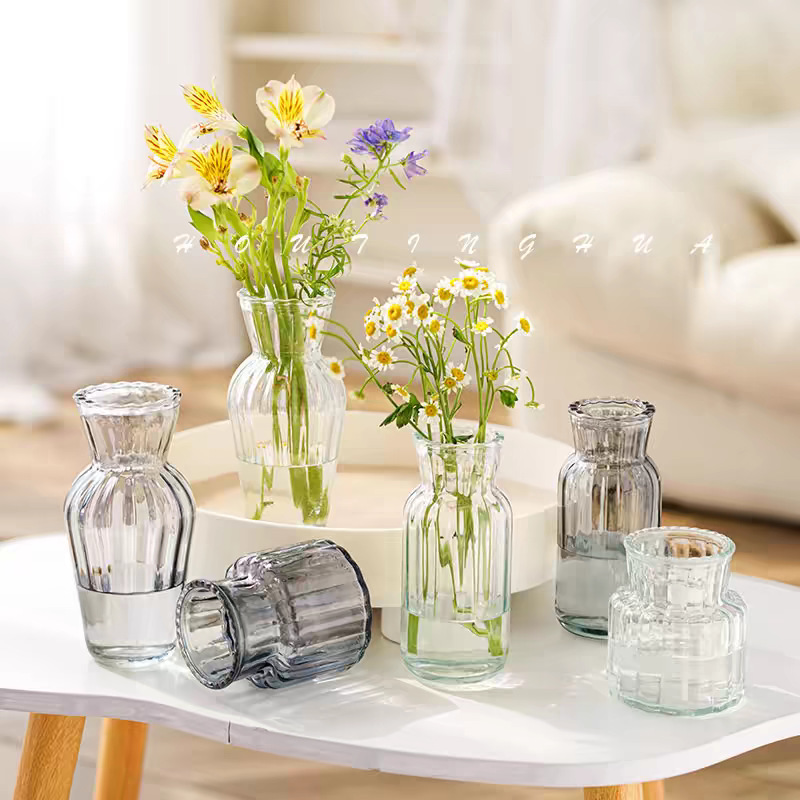 [3 피스 세트] 인 스타일 미니 유리 꽃병 수경 녹색 식물 장식 데스크탑 투명 꽃꽂이 장식품스토어 가기
