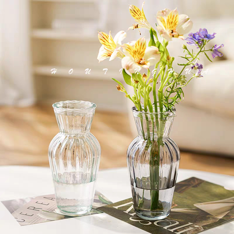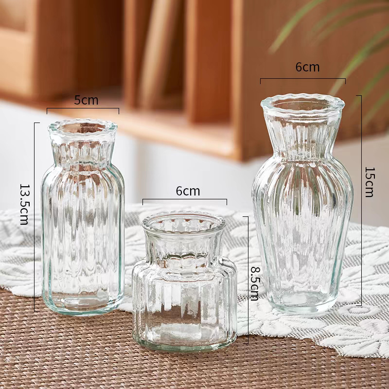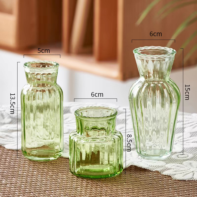 [3 피스 세트] 인 스타일 미니 유리 꽃병 수경 녹색 식물 장식 데스크탑 투명 꽃꽂이 장식품