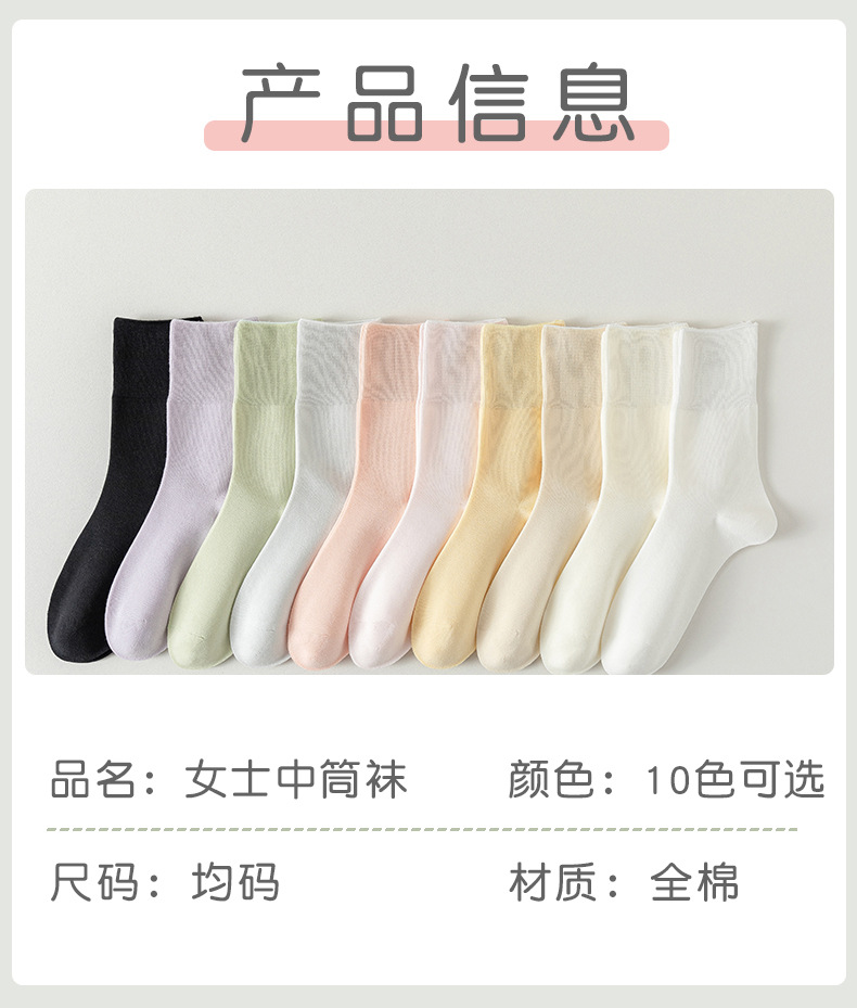 솔리드 컬러 올인원 코튼 양말 여성용 올인원 뼈없는 솔기 별도의 포장 여성 중형 튜브 여름 통기성 문 양말스토어 가기