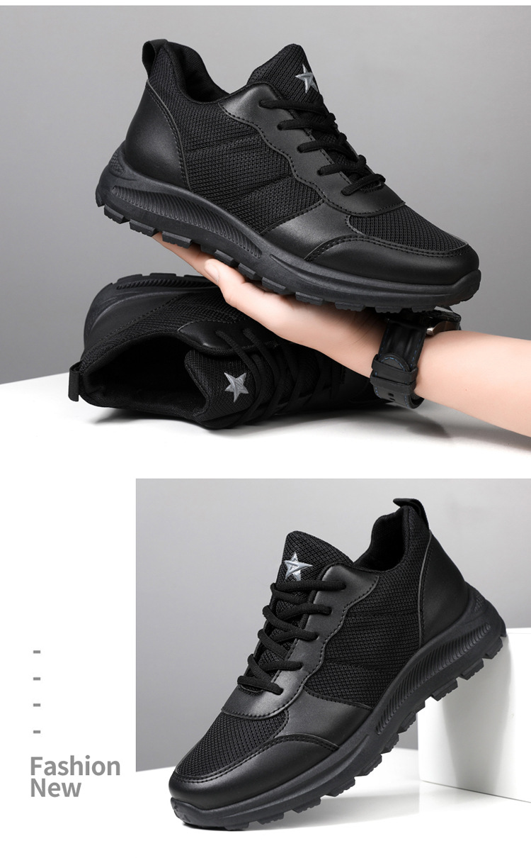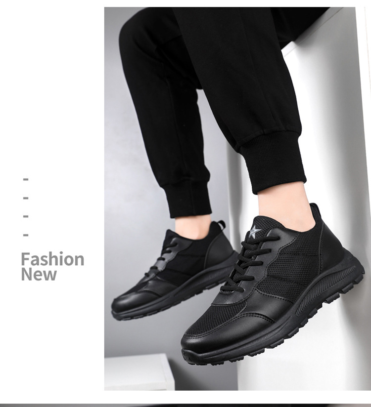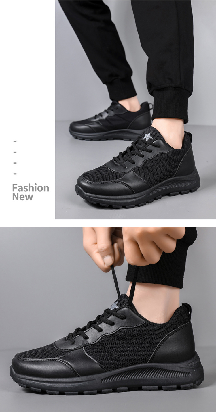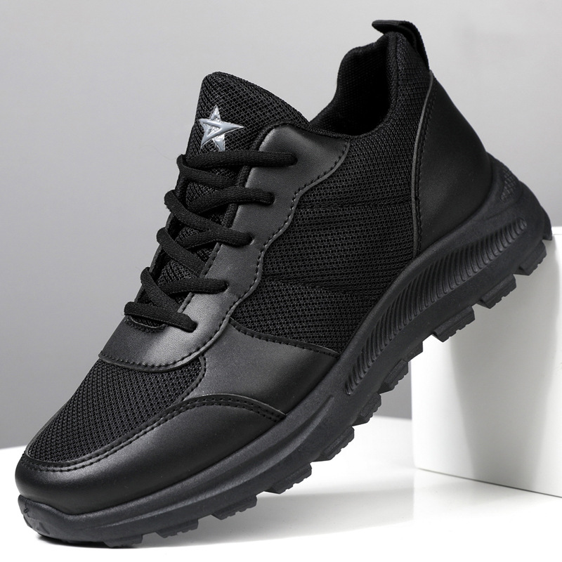 2025 봄 새로운 남성 신발 메쉬 통기성 스포츠 캐주얼 신발 소프트 단독 미끄럼 방지 간단한 순수한 검은 훈련 작업 신발스토어 가기