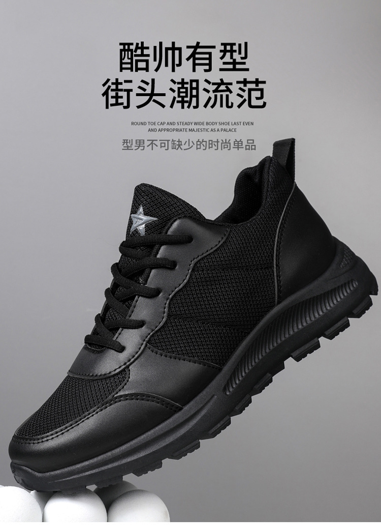 2025 봄 새로운 남성 신발 메쉬 통기성 스포츠 캐주얼 신발 소프트 단독 미끄럼 방지 간단한 순수한 검은 훈련 작업 신발