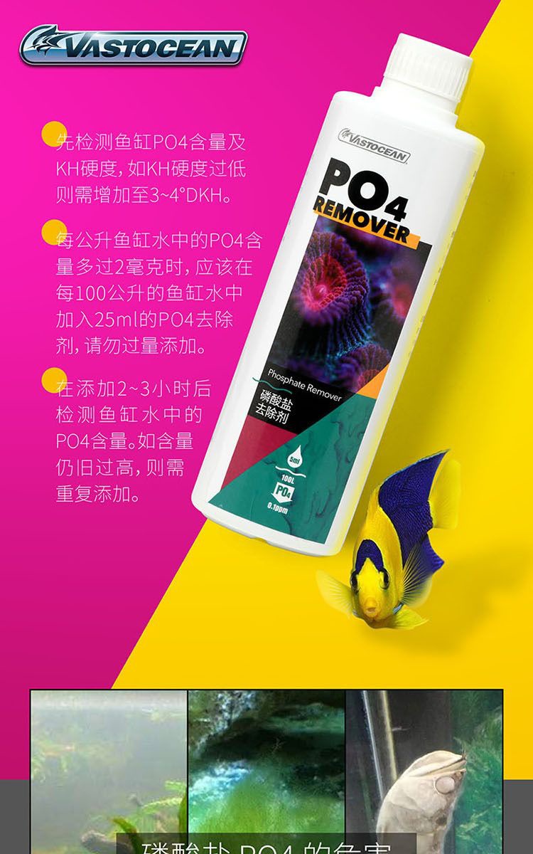 VASTOCEAN 인산염 제거제 정수제 PO4 제거 어항 수족관 물 정화 사악한 조류 홍수