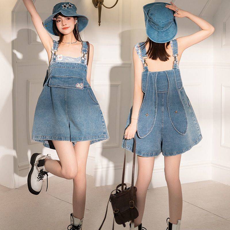 나이를 줄이는 기질 디자인 센스 토끼 귀 데님 스트랩 반바지 여성 여름 플러스 사이즈 통통녀 서양식 슬림 룩 점프 수트스토어 가기