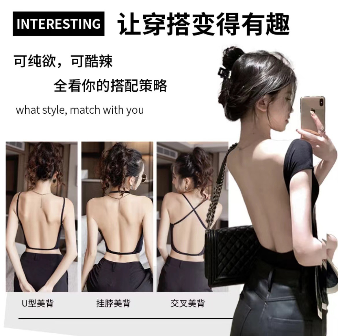미국 등 속옷 여성의 대형 U 자형 새 도착 슬링 작은 가슴 모임 Traceless Triangle Cup Cross Backless Bra