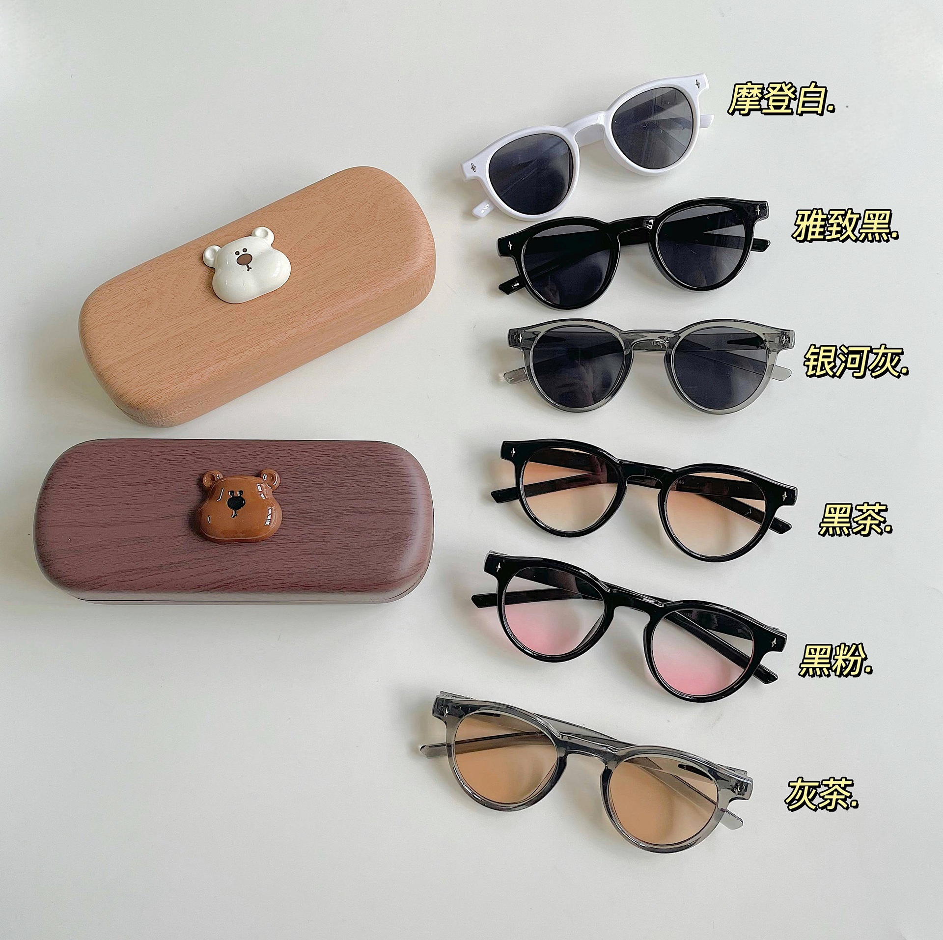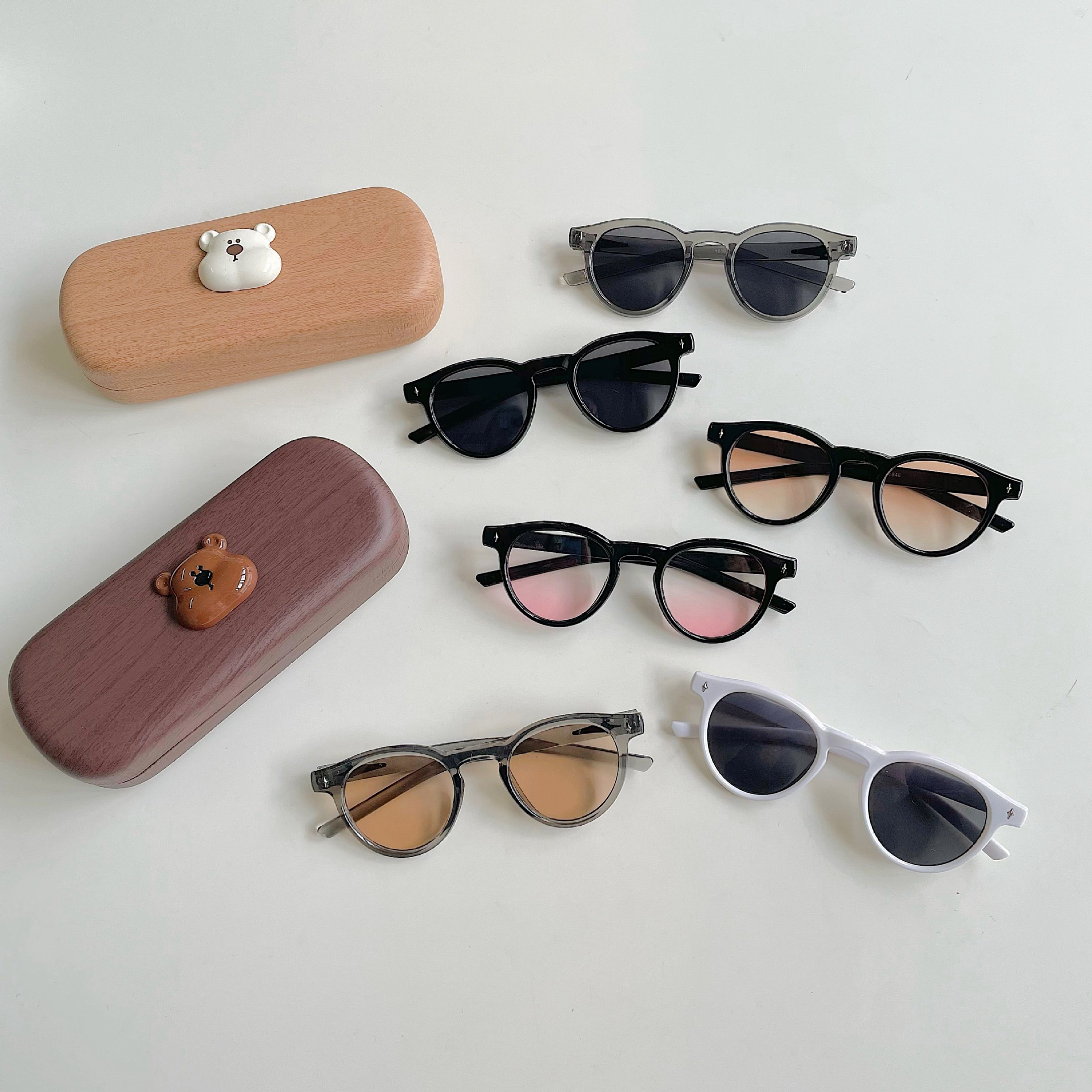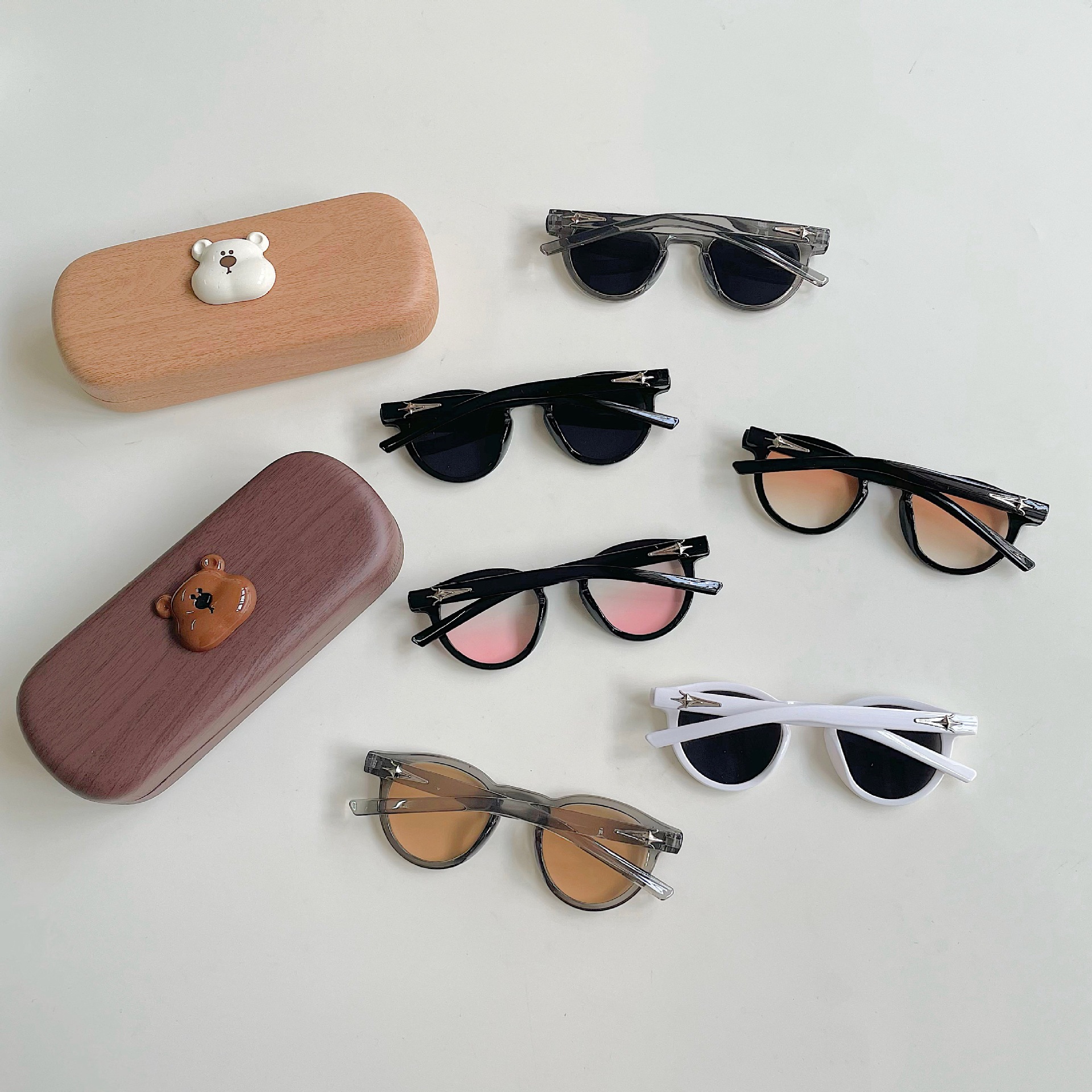 Ins Bear Box 2-piece 세트 2 어린이 선글라스 남녀 아기 컨캐브 모양 패션 선글라스 UV 보호 선글라스스토어 가기