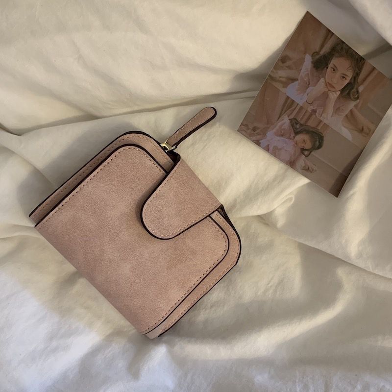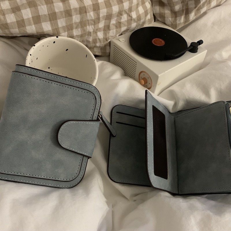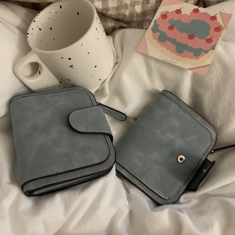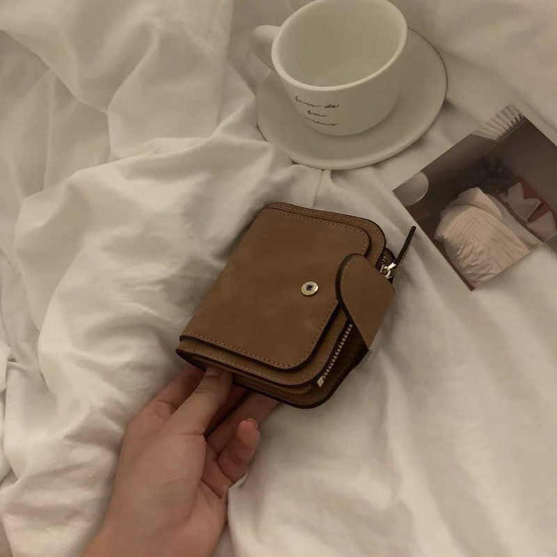 인스샵 일본식 빈티지 다크 브라운 짧은 접이식 지갑 여성 카드 가방 멀티 카드 동전 지갑 포켓