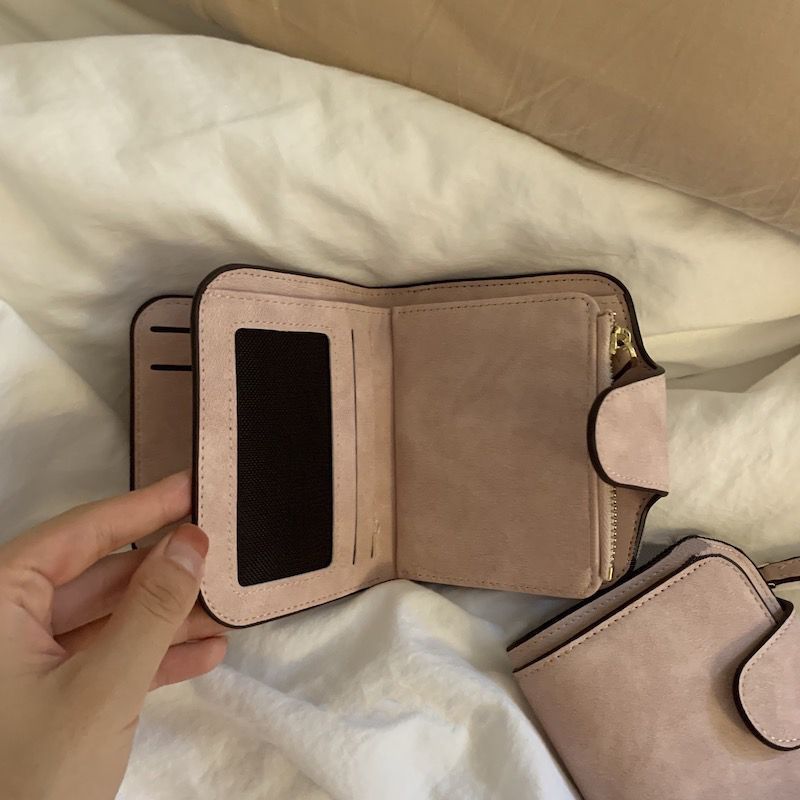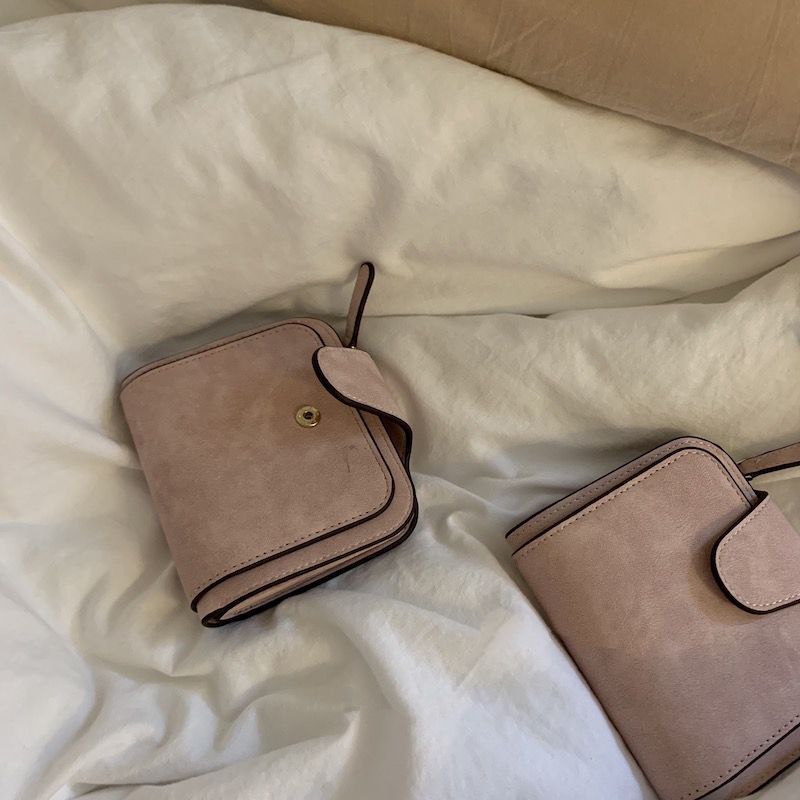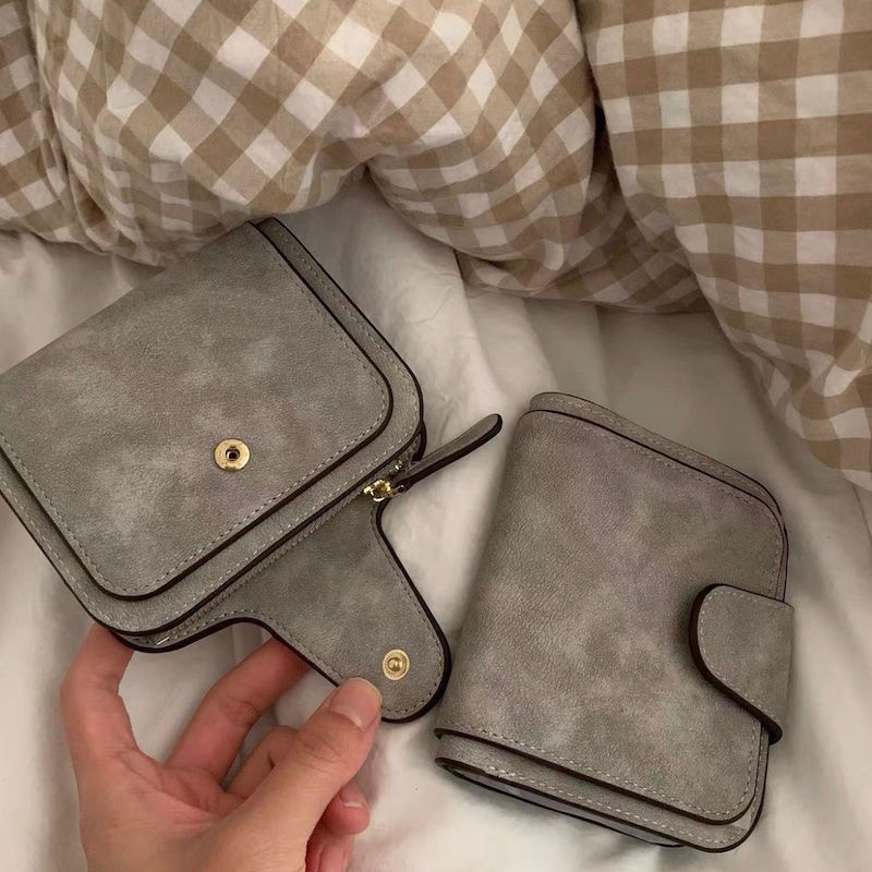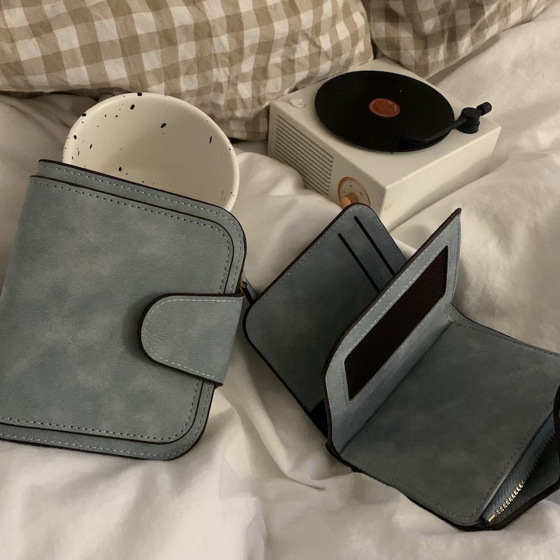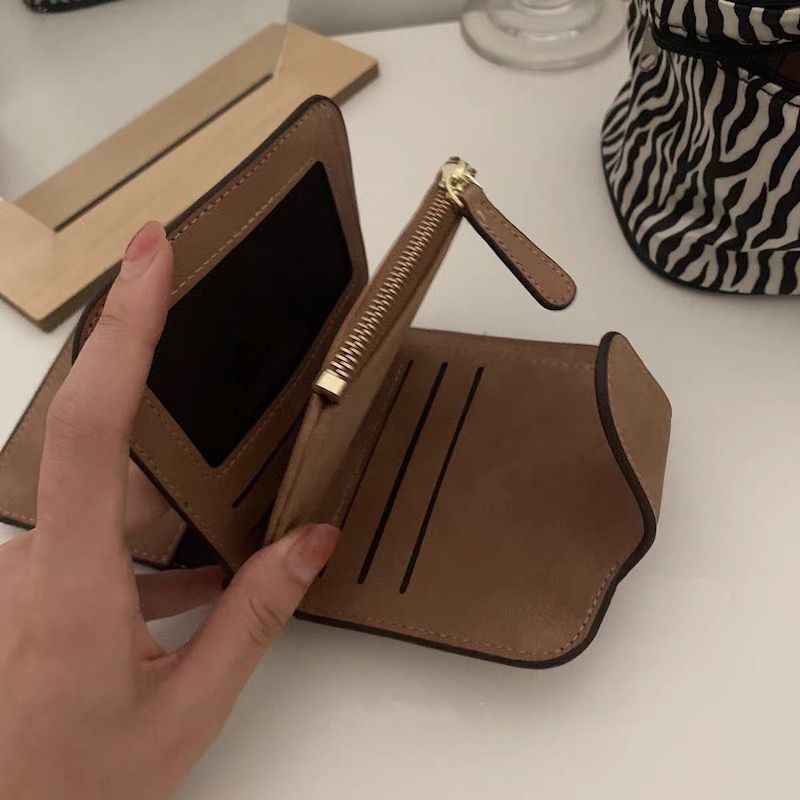 인스샵 일본식 빈티지 다크 브라운 짧은 접이식 지갑 여성 카드 가방 멀티 카드 동전 지갑 포켓스토어 가기