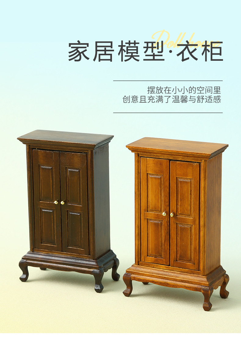 1:16 인형 집 미니어처 음식 놀이 DIY 미니 가구 모델 액세서리 포켓 유럽 간단한 2 도어 옷장