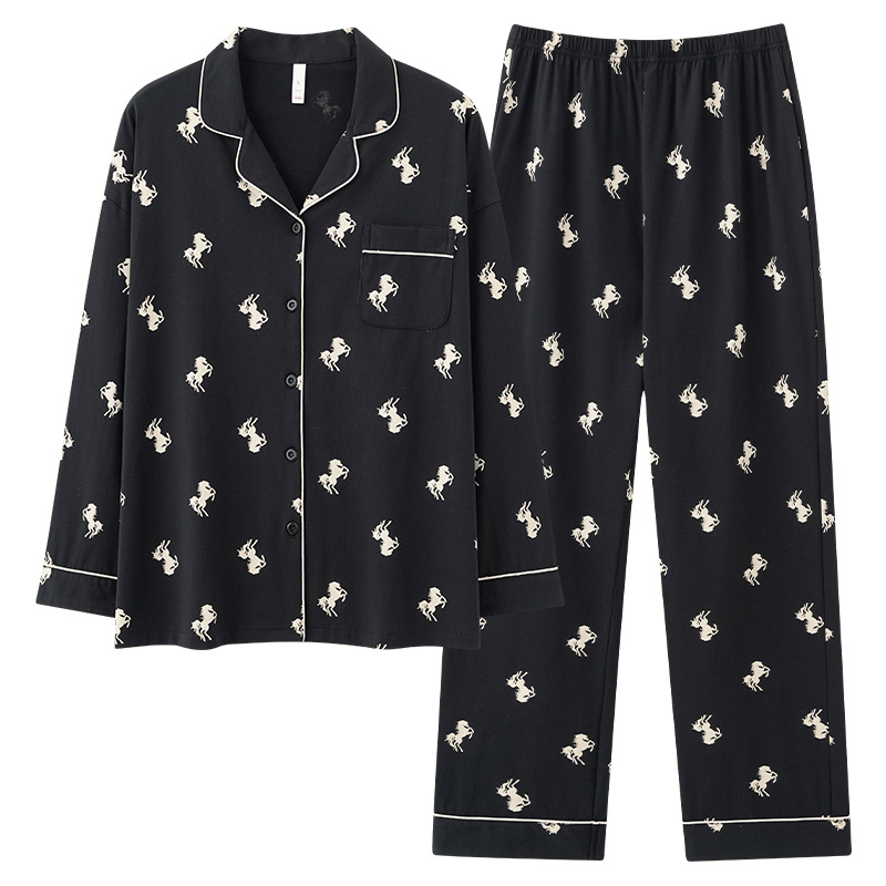 [항균] A 급 커플 잠옷 여성 순면 봄 · 가을 긴 소매 만화 남성 홈 의류 세트 고감각스토어 가기