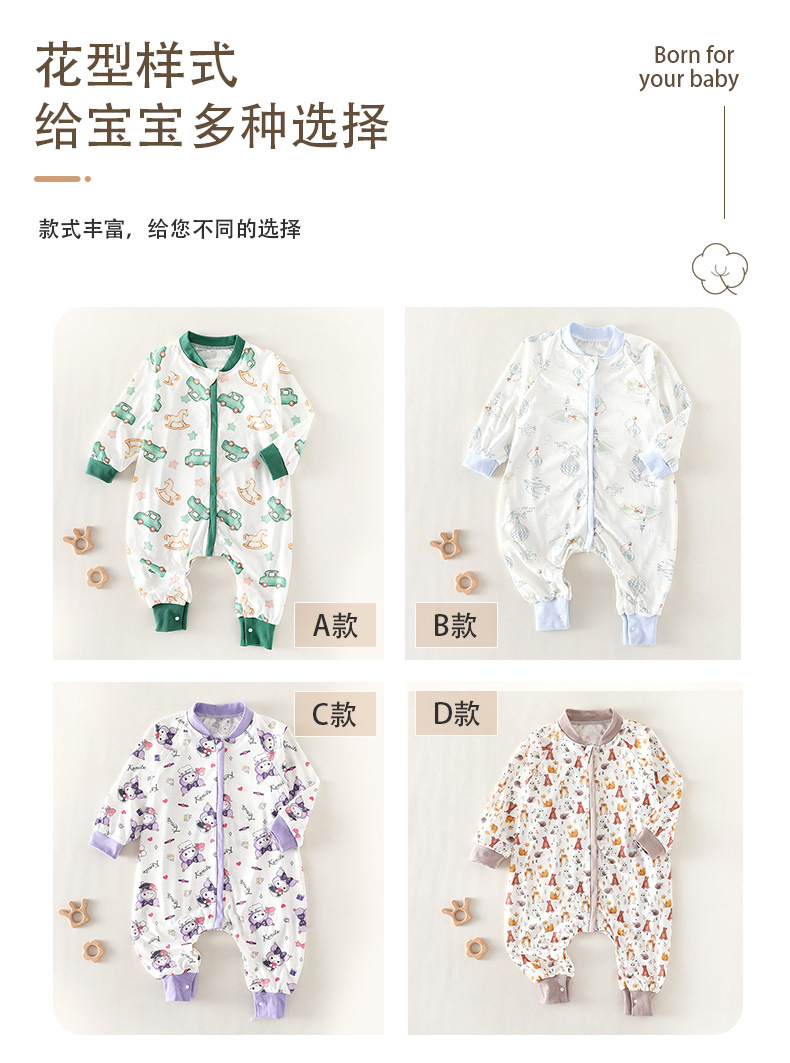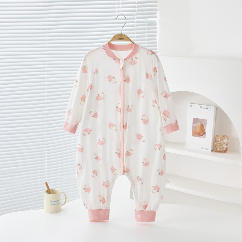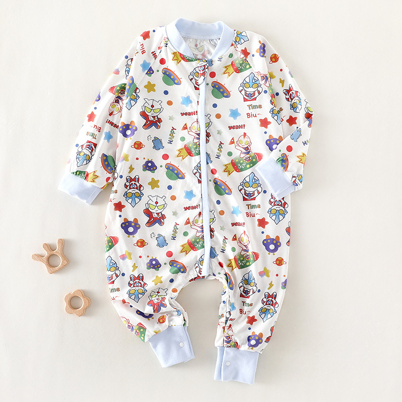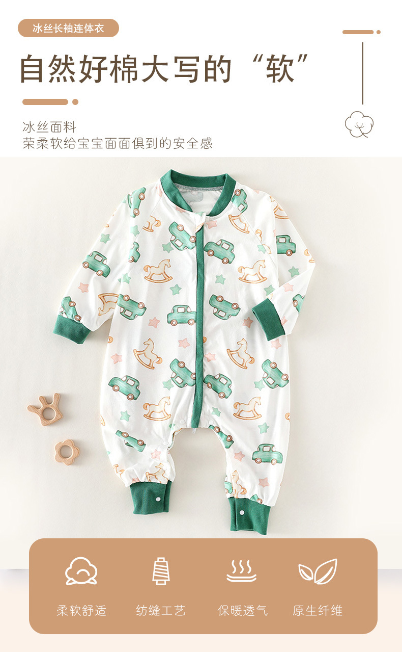 어린이 여름 아이스 실크 긴 소매 아기 슬리핑 백 봄과 가을 순면 싱글 레이어 에어컨 킥 방지 아동복
