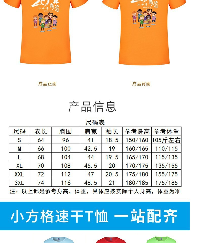 小方格速干圆领短袖马拉松活动团体服广告衫文化衫礼品logo