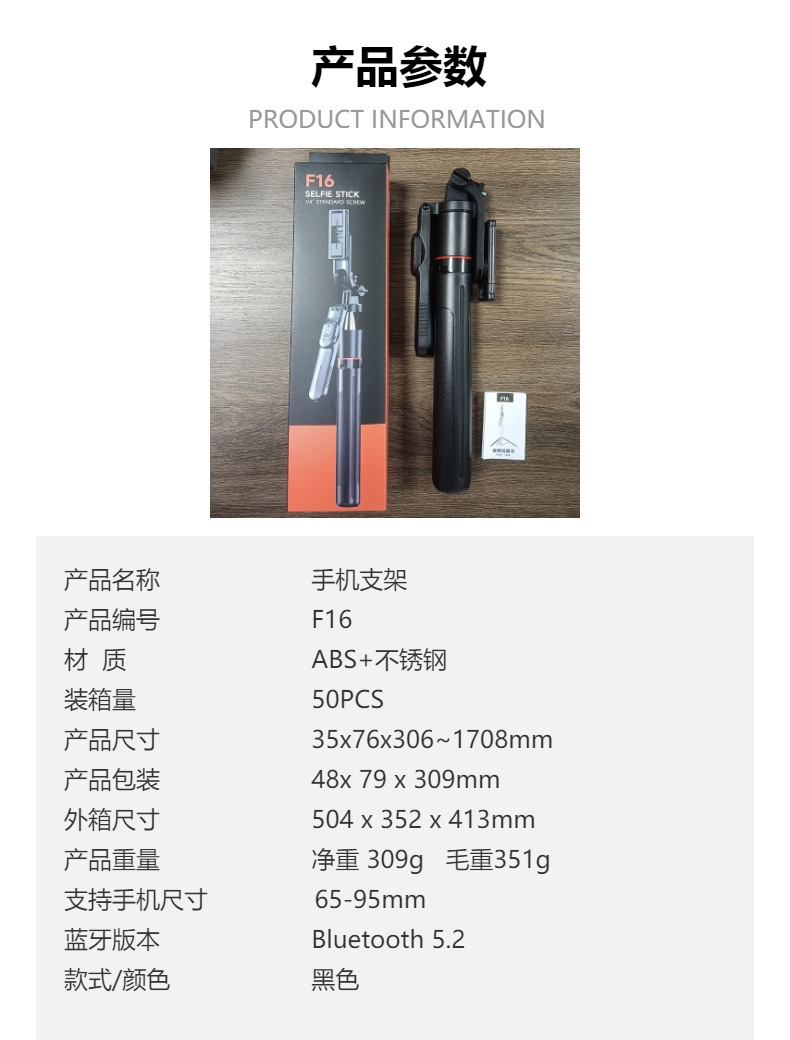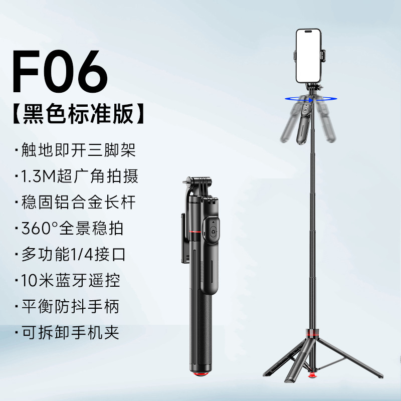 F16 휴대 전화 셀카 스틱 삼각대 파노라마 회전 사진 촬영 손떨림 방지 여행 휴대용 블루투스 휴대 전화 홀더 1.7m스토어 가기