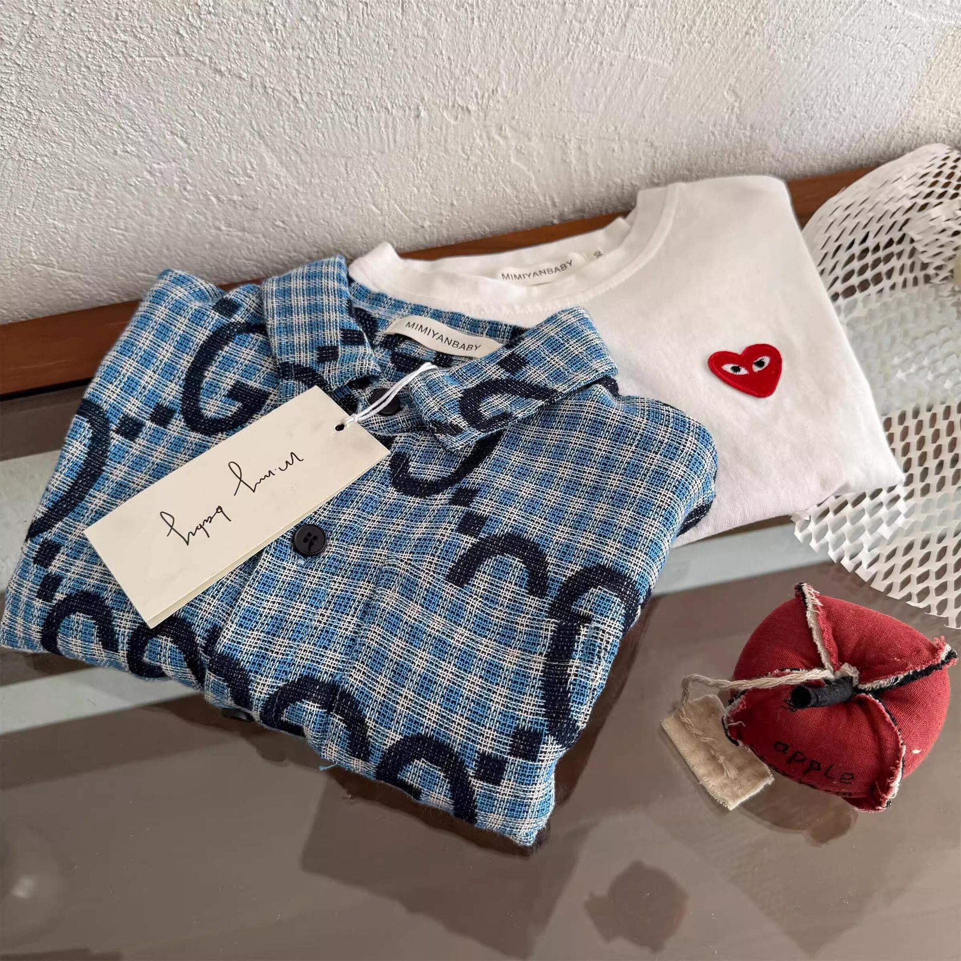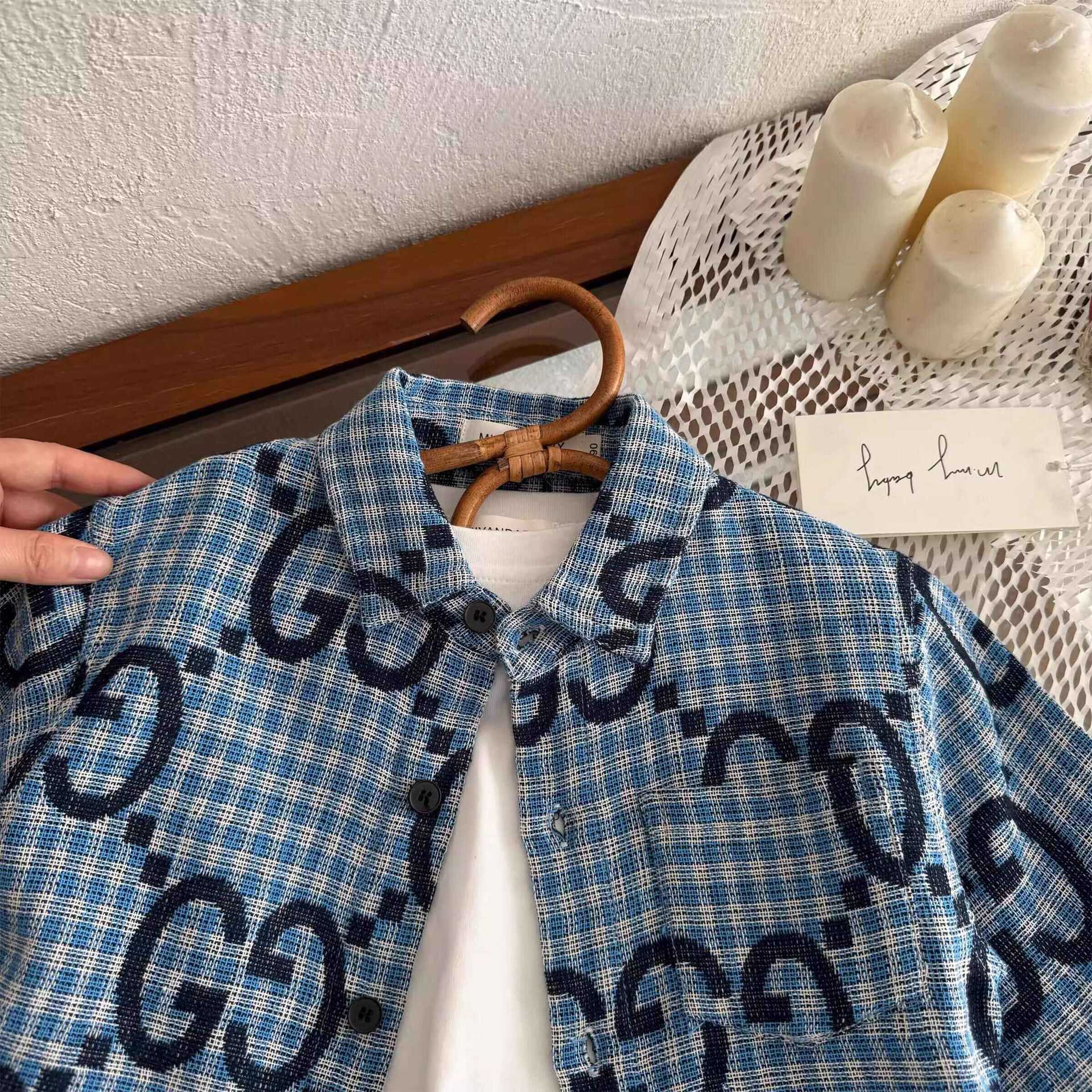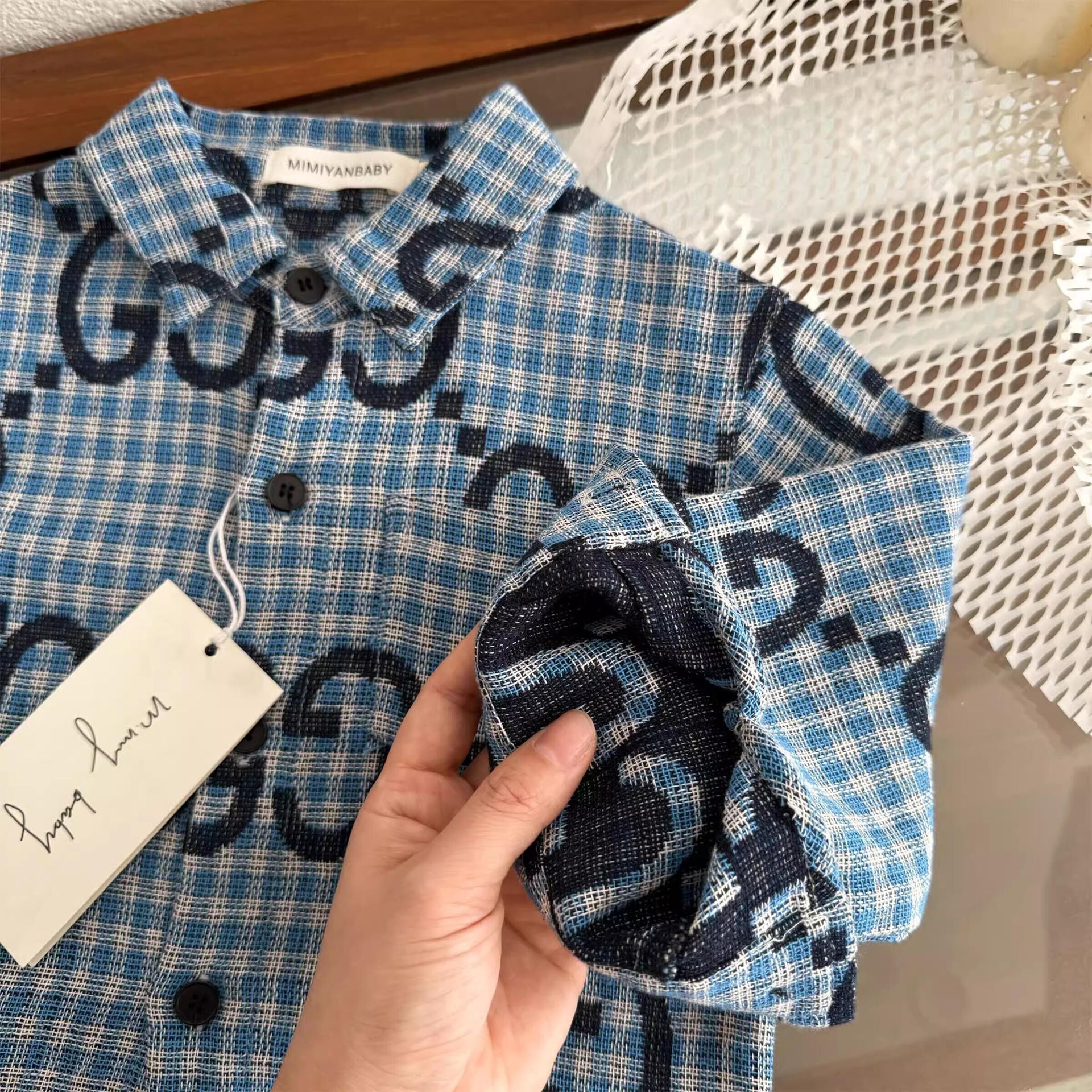 [한샤오샤오] 아동용 긴팔 셔츠, 봄 노안 트렌디 브랜드 셔츠, 베이비 풀 프린트 체크 무늬 재킷, 아동용 상의