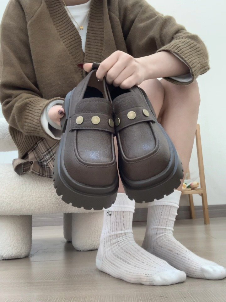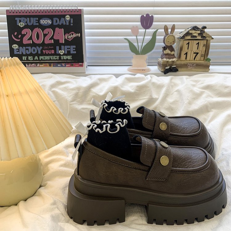 빈티지 두꺼운 밑창 높이 증가 영국 스타일 올 매치 로퍼 여성 특허 가죽 싱글 레이어 신발 2025 봄과 가을 메리 제인 작은 가죽 신발스토어 가기