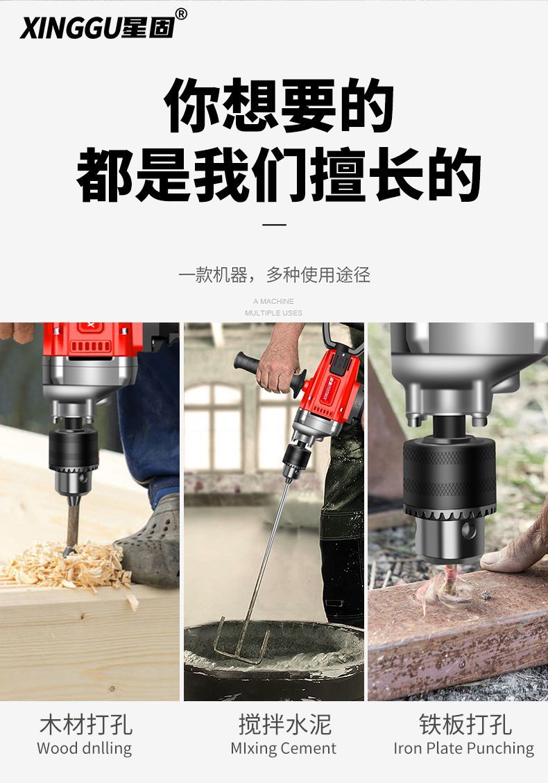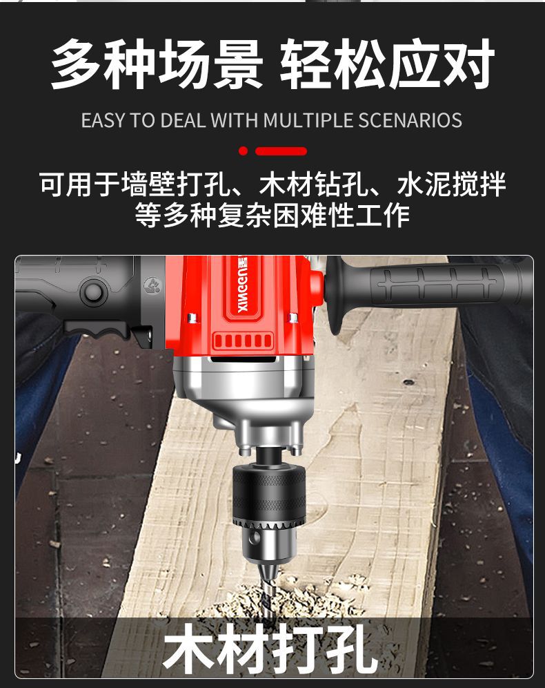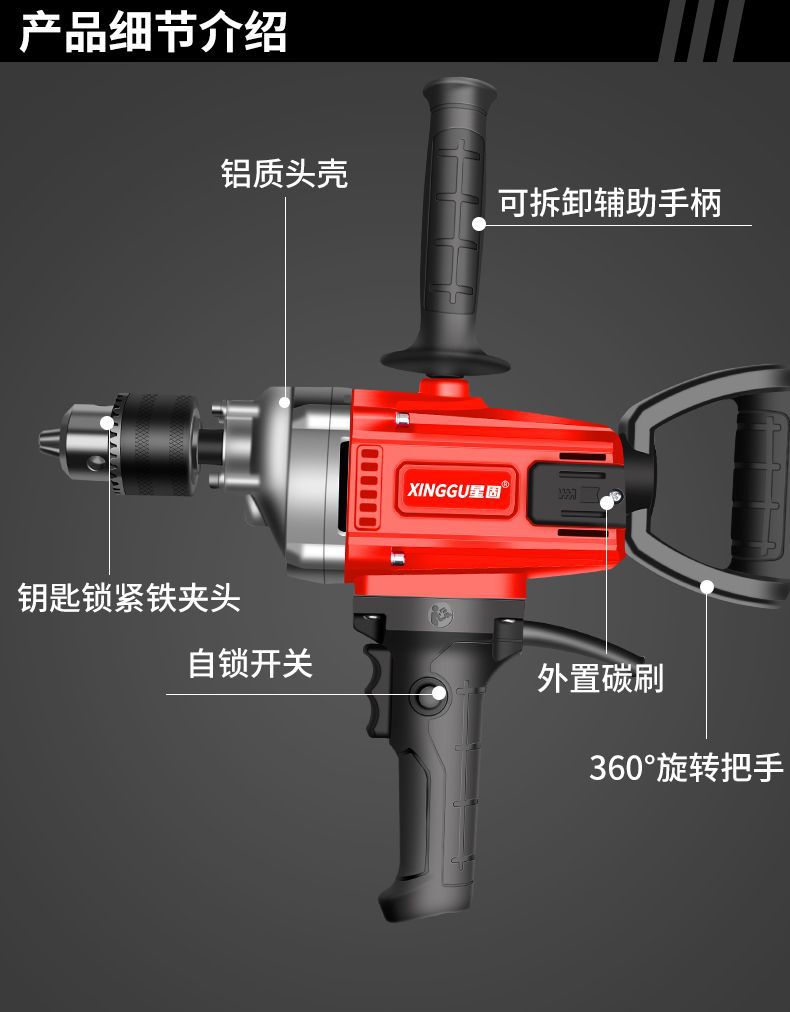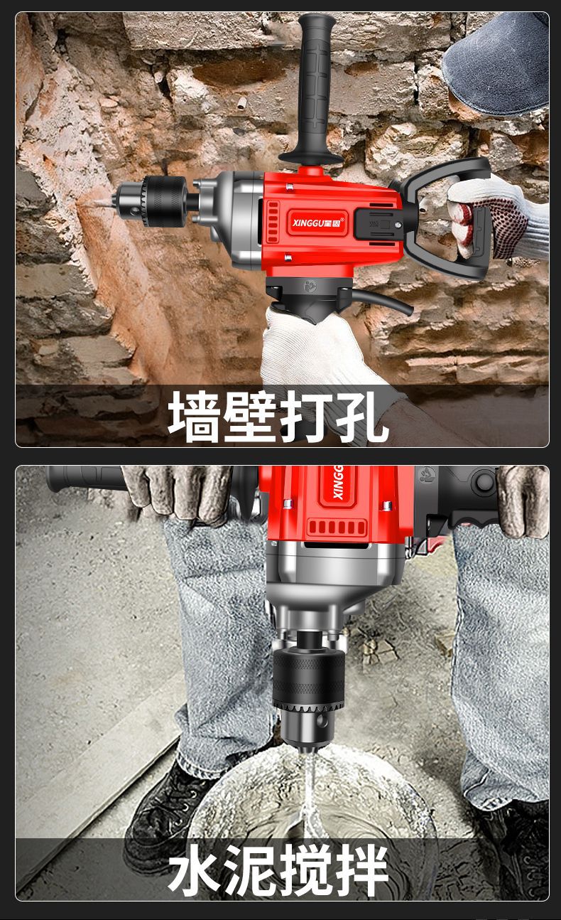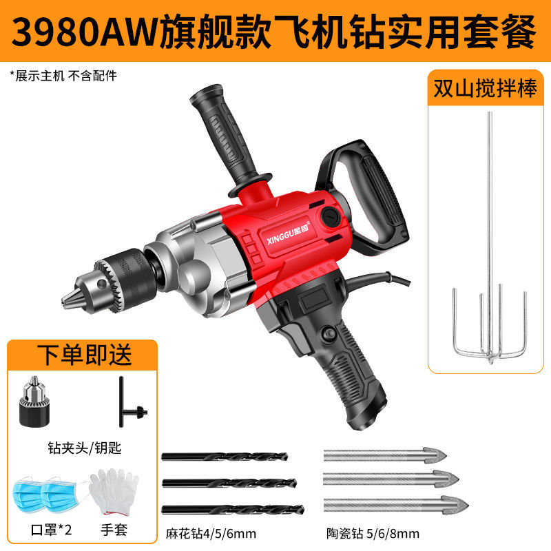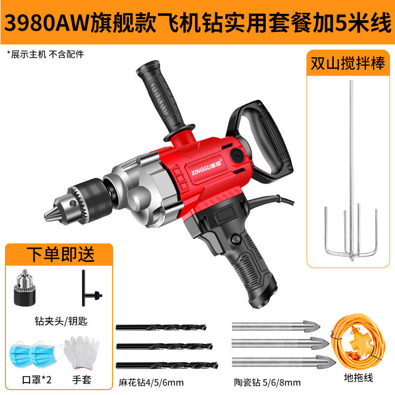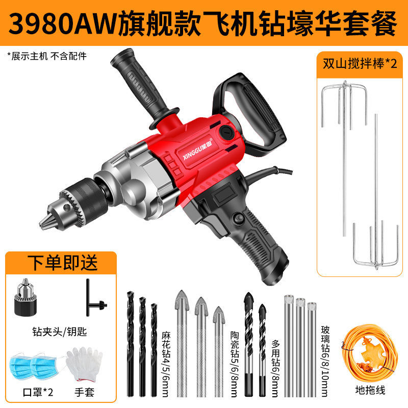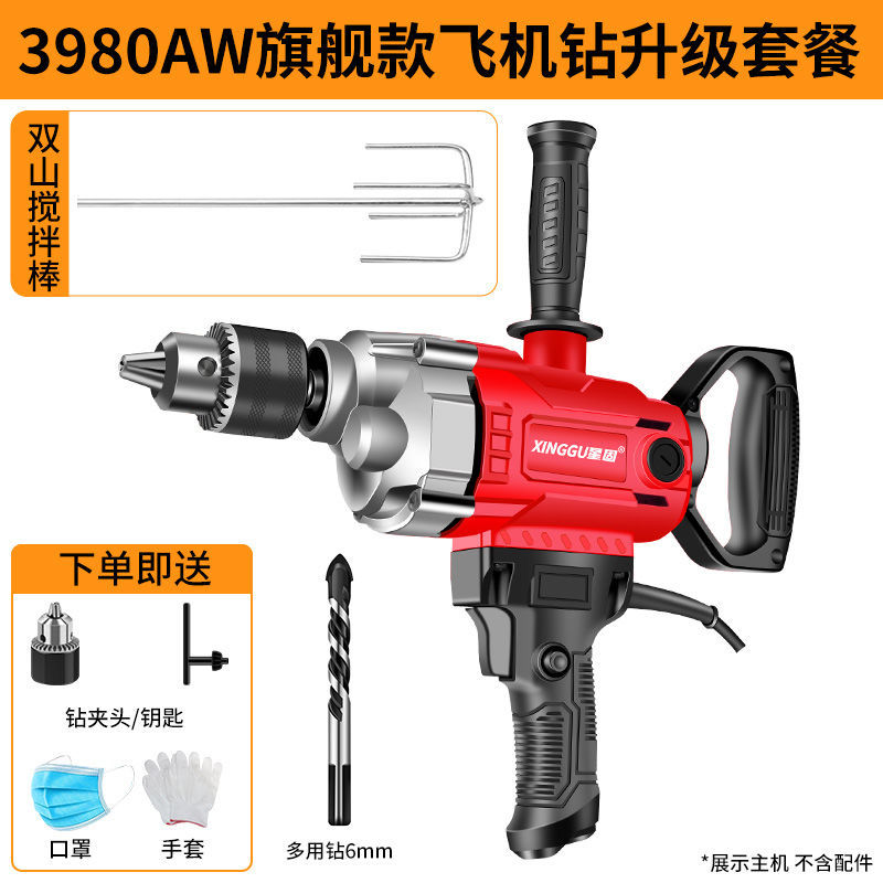 Xinggu 항공기 드릴 고출력 퍼티 파우더 시멘트 혼합 기계 다기능 재 기계 전기 유물 믹서스토어 가기