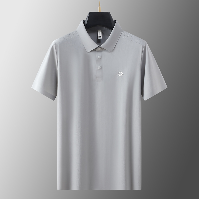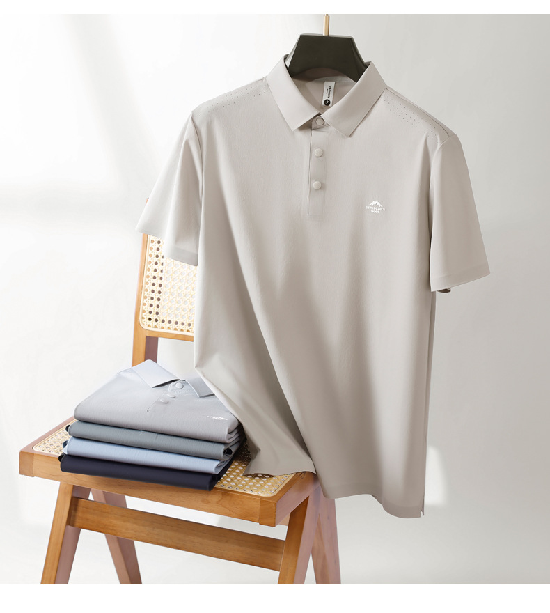 반팔 폴로 셔츠 남성 캐주얼 비즈니스 무봉제 아이스 실크 단색 카라 티셔츠 남성 여름 신상 고탄력 남성복
