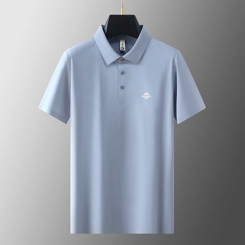 반팔 폴로 셔츠 남성 캐주얼 비즈니스 무봉제 아이스 실크 단색 카라 티셔츠 남성 여름 신상 고탄력 남성복스토어 가기
