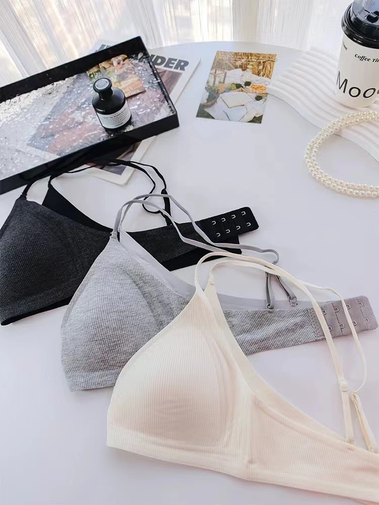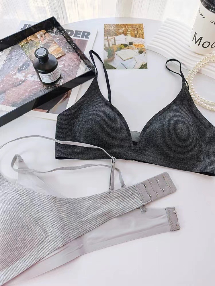 Traceless Triangle Cup Threaded 속옷 여성용 Rimless 작은 가슴 편안한 간단한 내부 뷰티 백 브라 얇은 002
