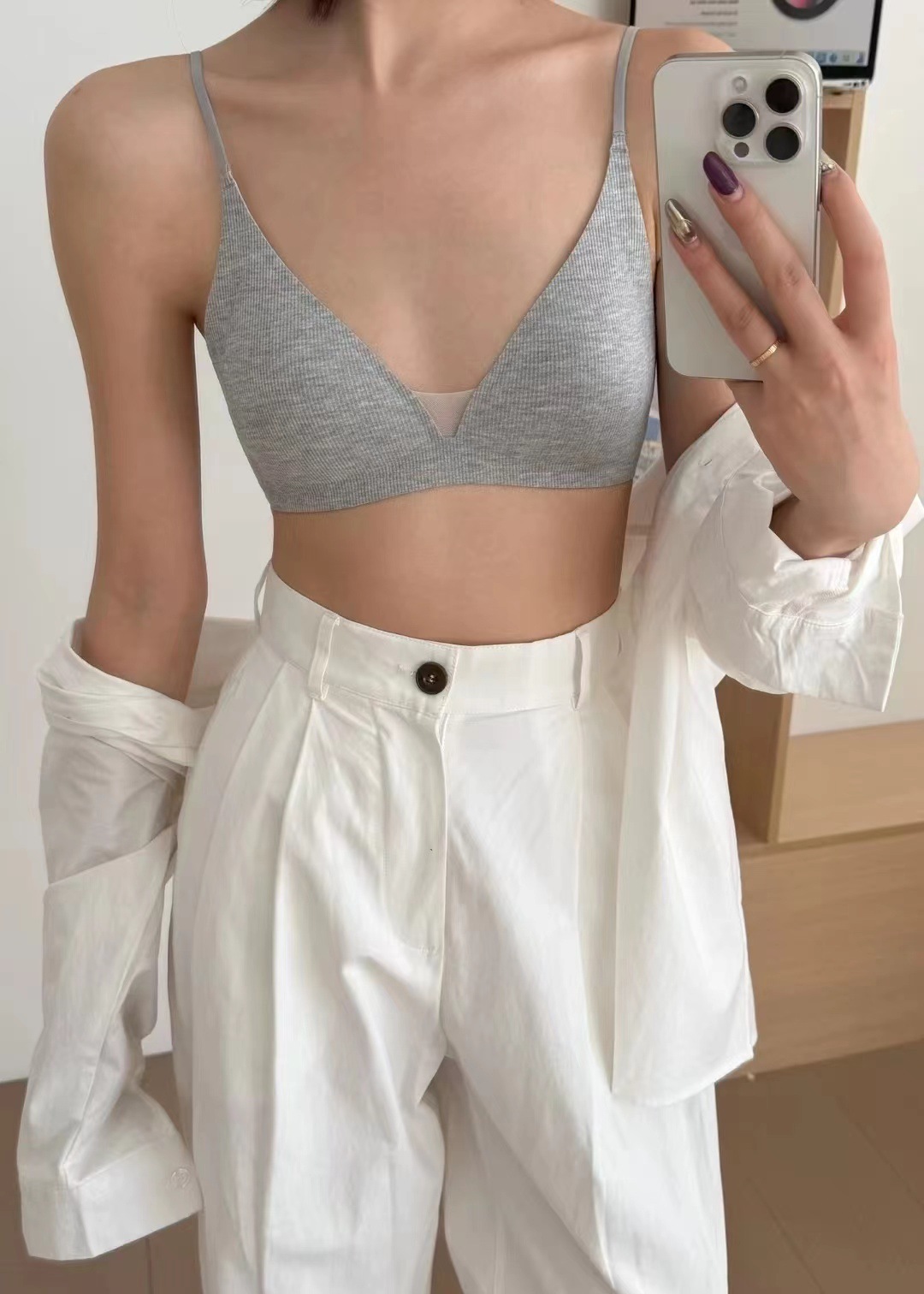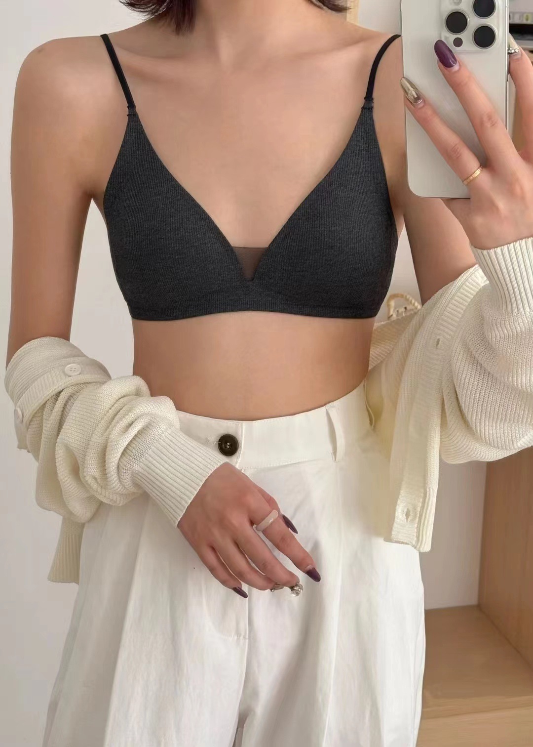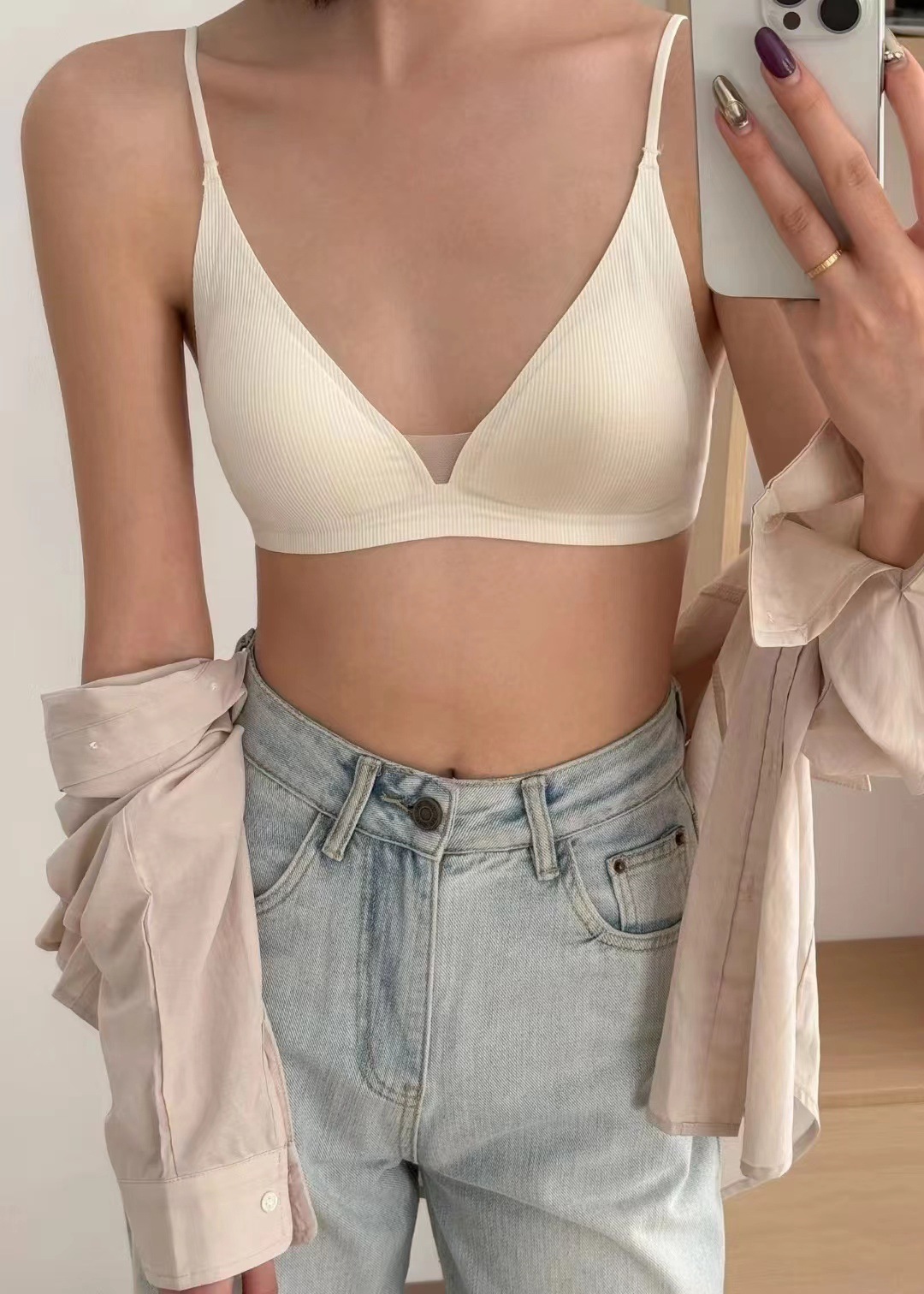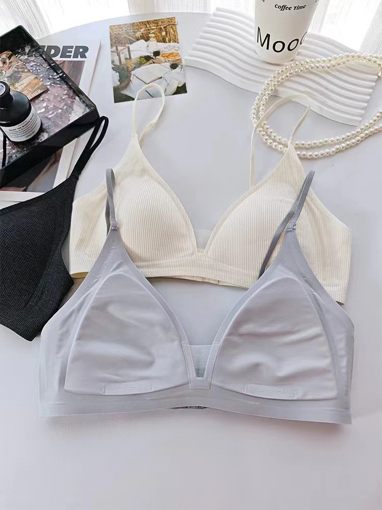 Traceless Triangle Cup Threaded 속옷 여성용 Rimless 작은 가슴 편안한 간단한 내부 뷰티 백 브라 얇은 002스토어 가기