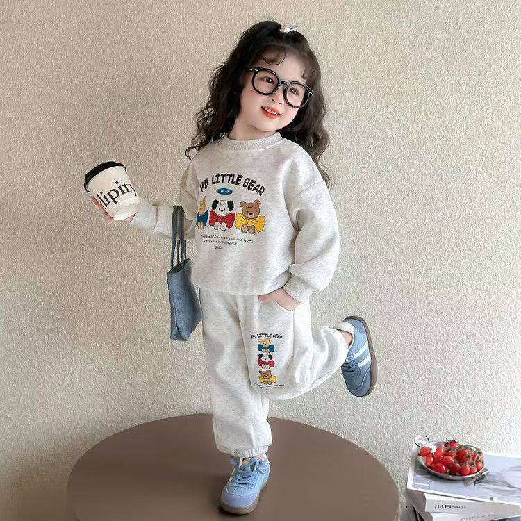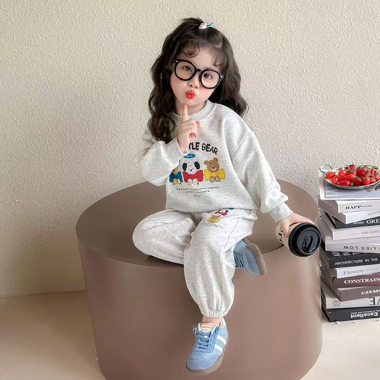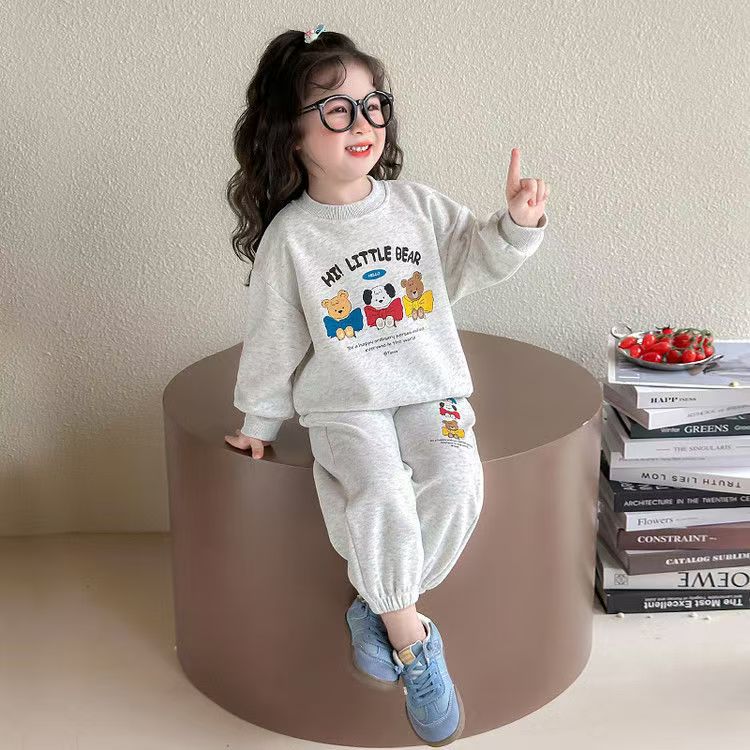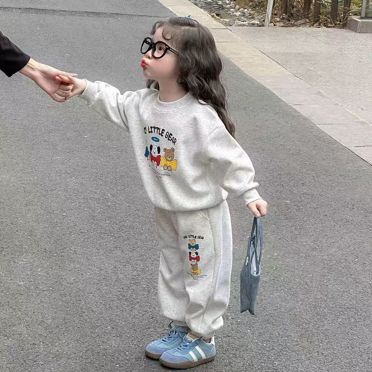 소녀의 봄 스포츠 세트 2025 새로운 세련된 유행 캐주얼 투피스 세트 봄과 가을 땀 바지스토어 가기