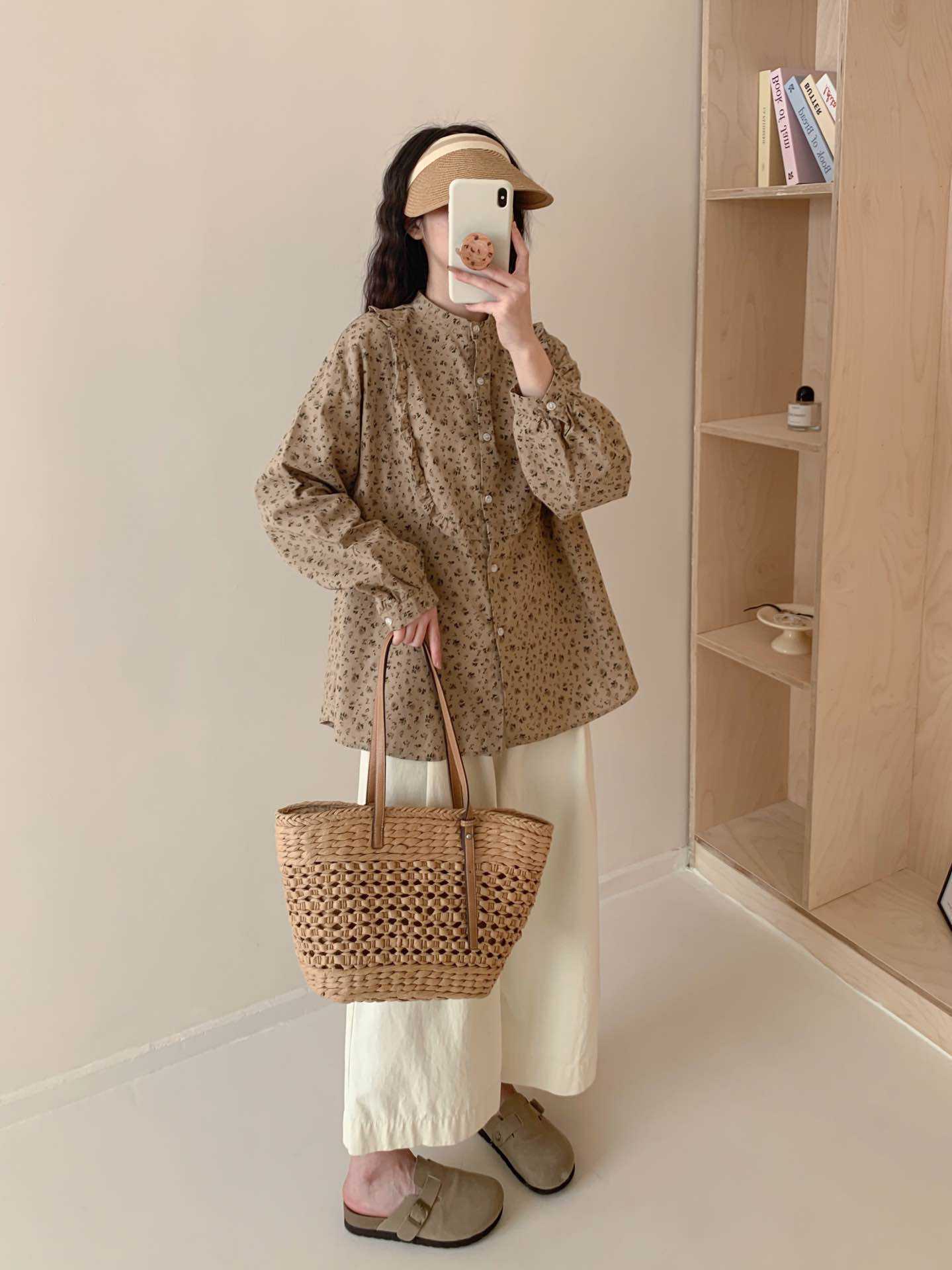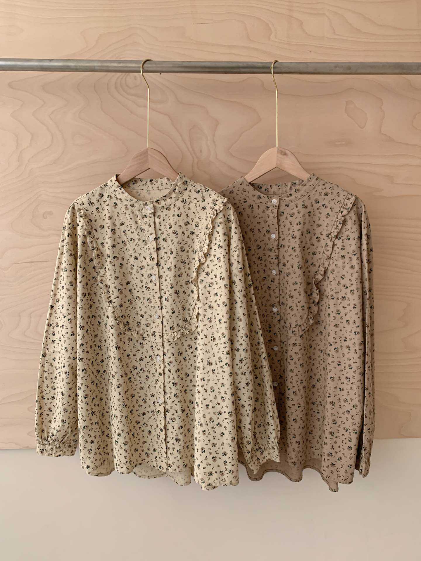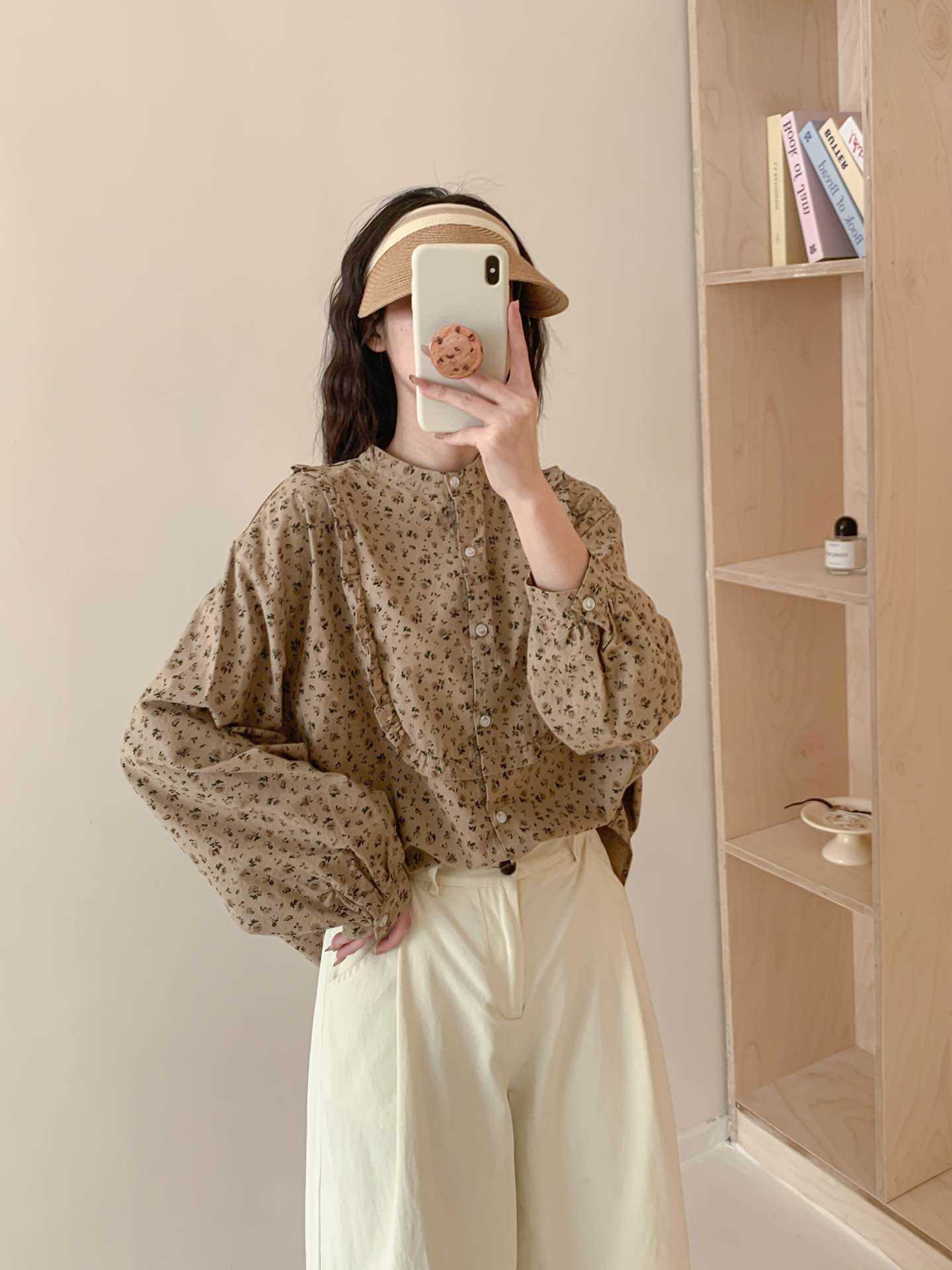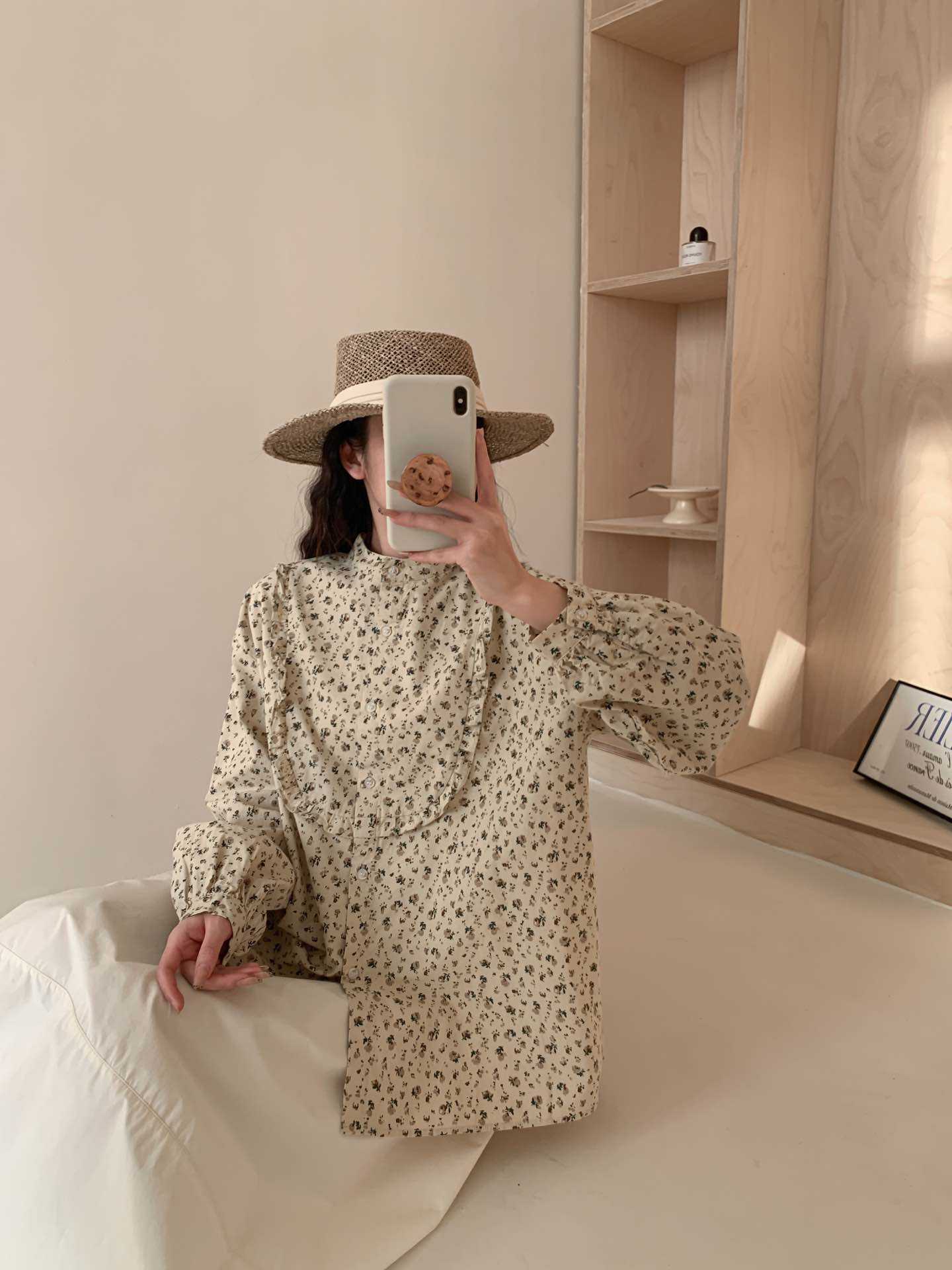 뉴 모리 스타일 스위트 스몰 칼라 싱글 브레스트 올 매치 에이지 감소 플로랄 롱 슬리브 디자인 올 매치 셔츠 탑 트렌디스토어 가기