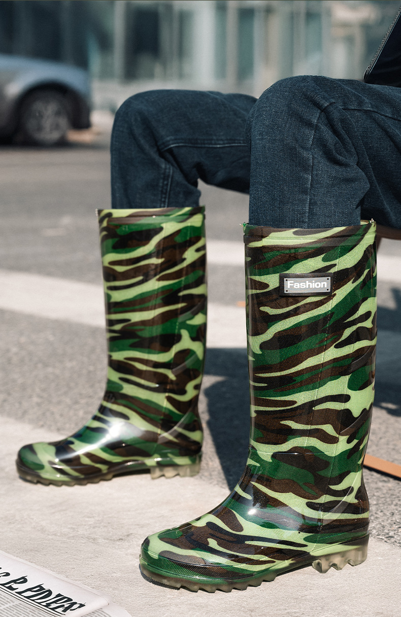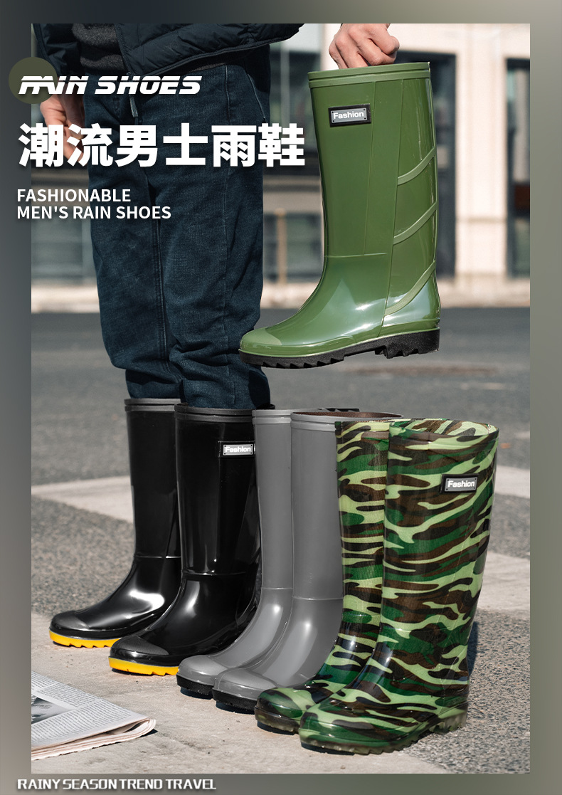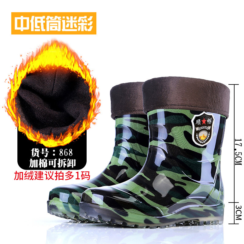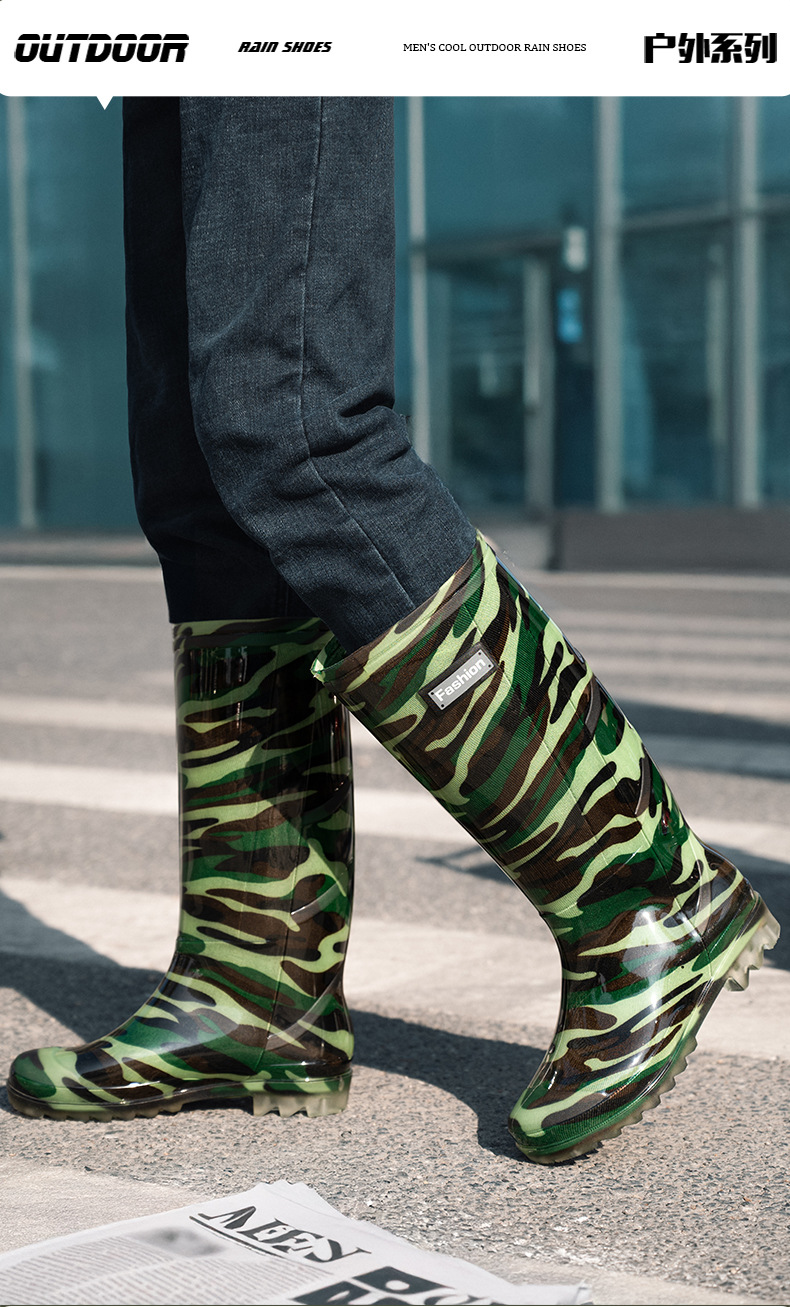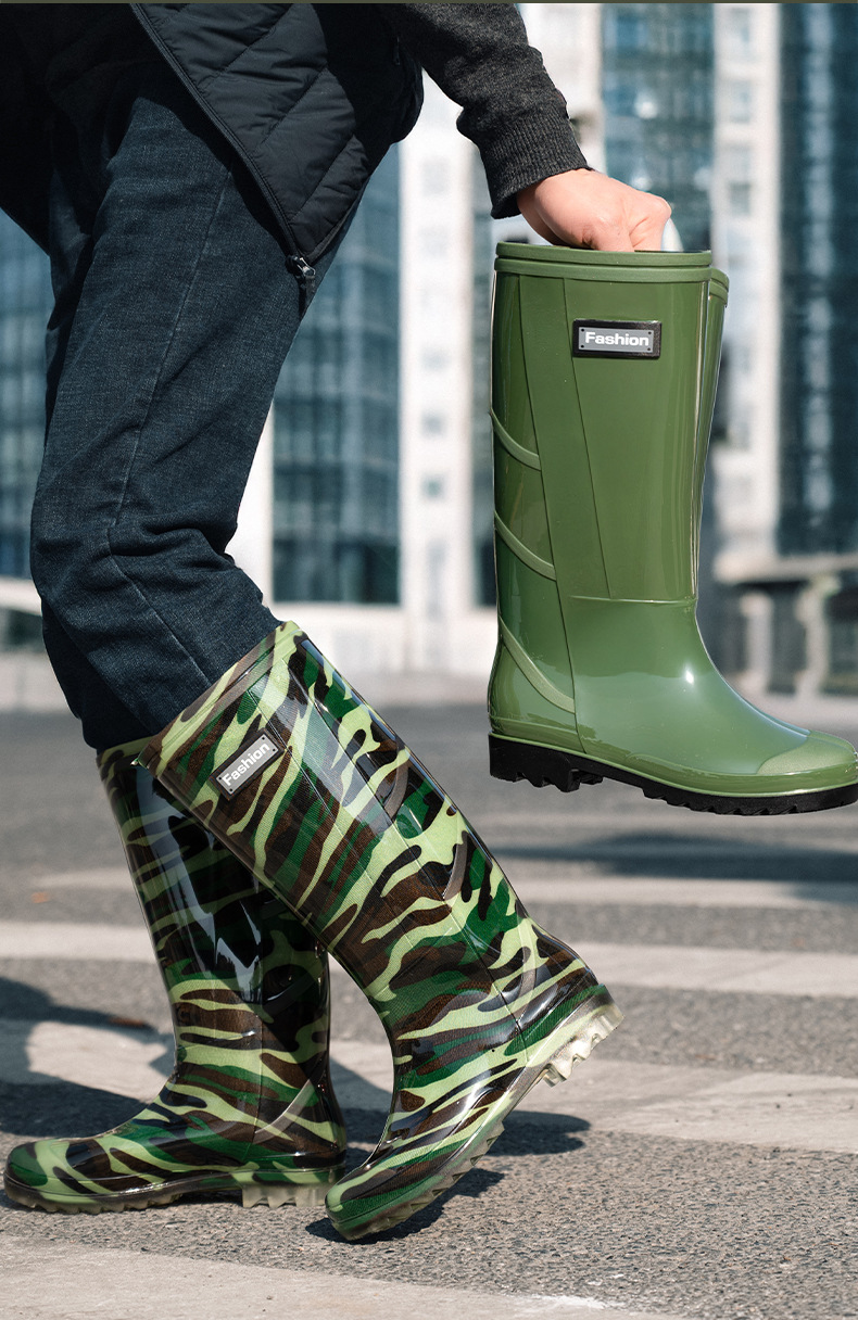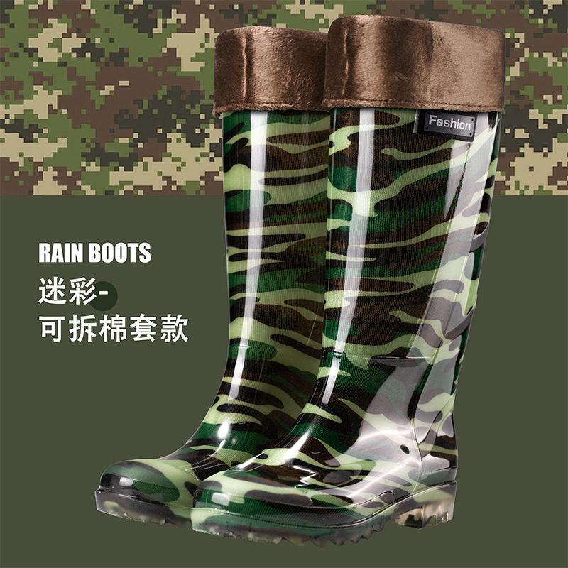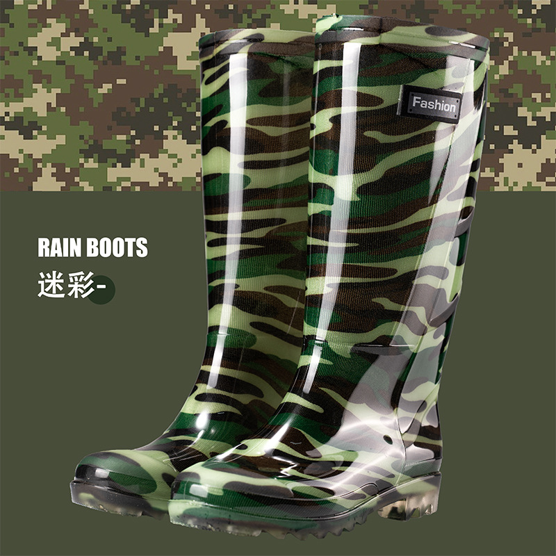 노동 보호 높은 배럴 비 신발 위장 남성 힘줄 바닥 방수 내마모성 수화 기모 따뜻한 신발 폭발 도매 Taobao