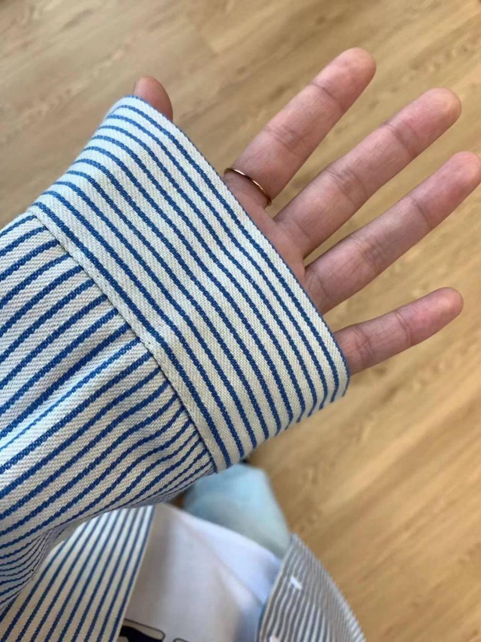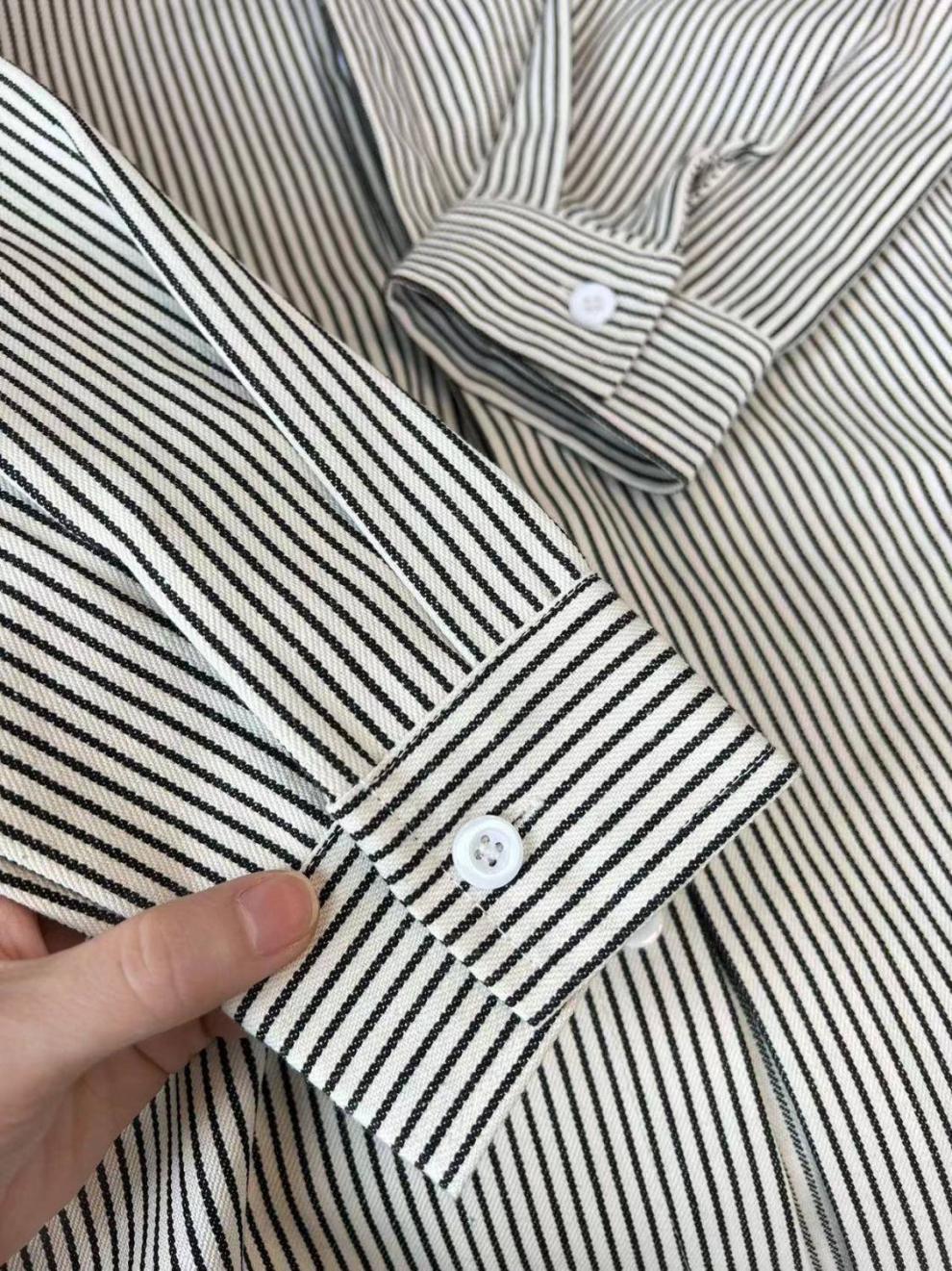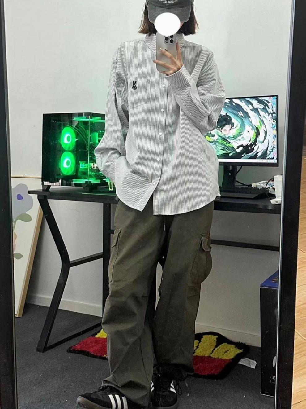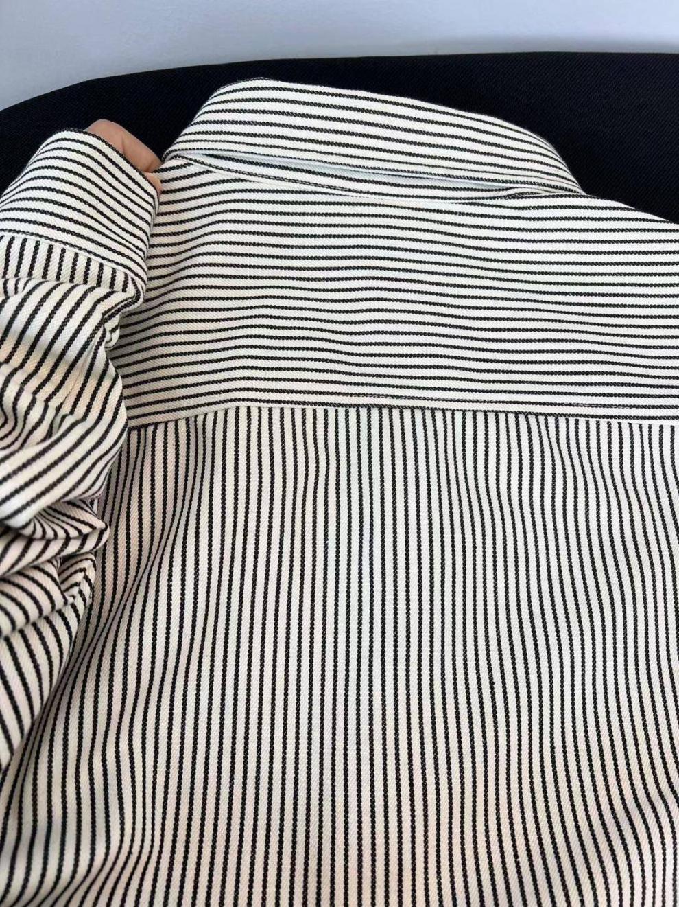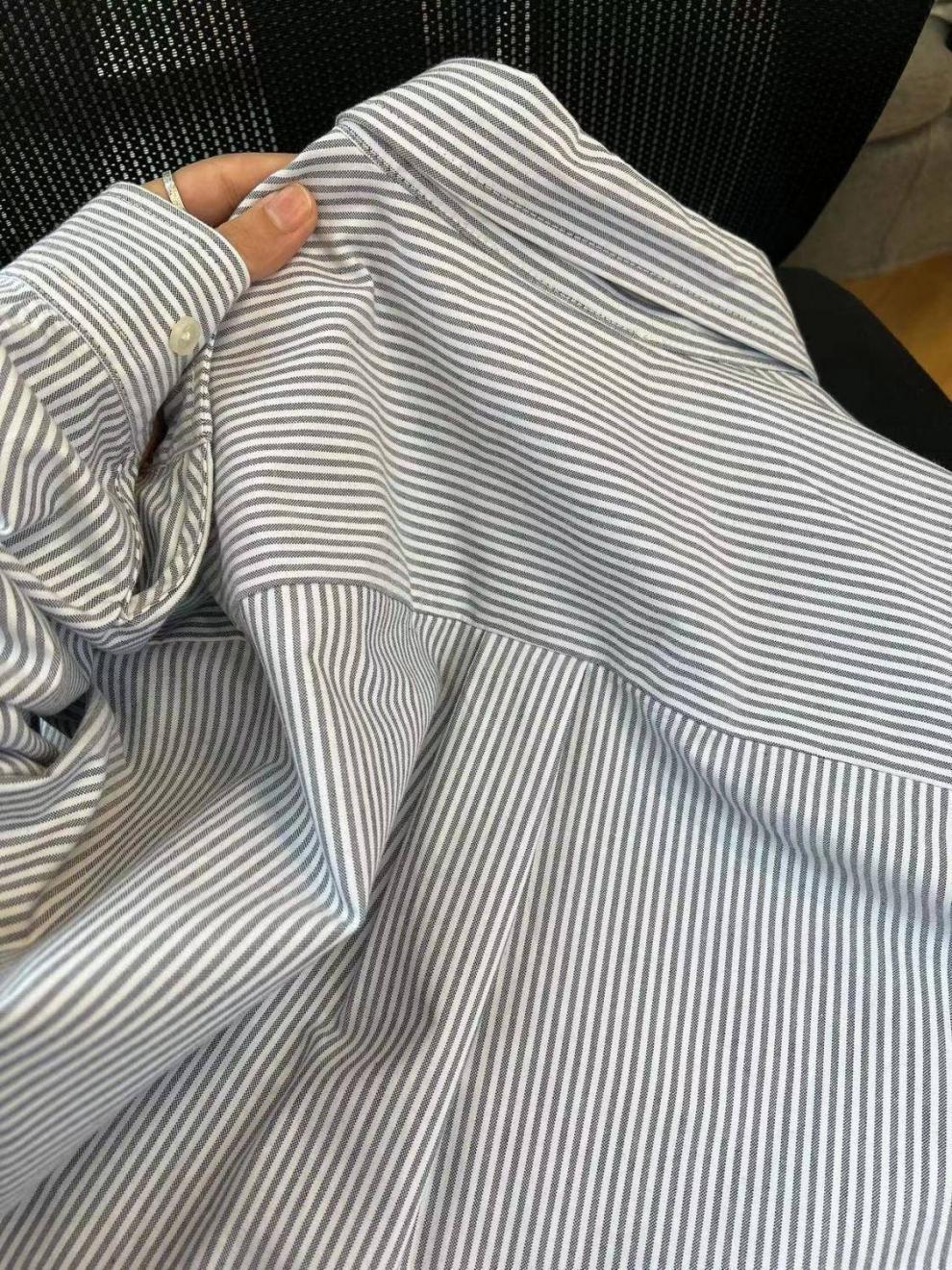 가벼운 럭셔리 레트로 스타일 코튼 그레이 스트라이프 셔츠 여성용 내부 쌓인 느슨한 올매치 슬림핏 긴소매 아우터 셔츠스토어 가기