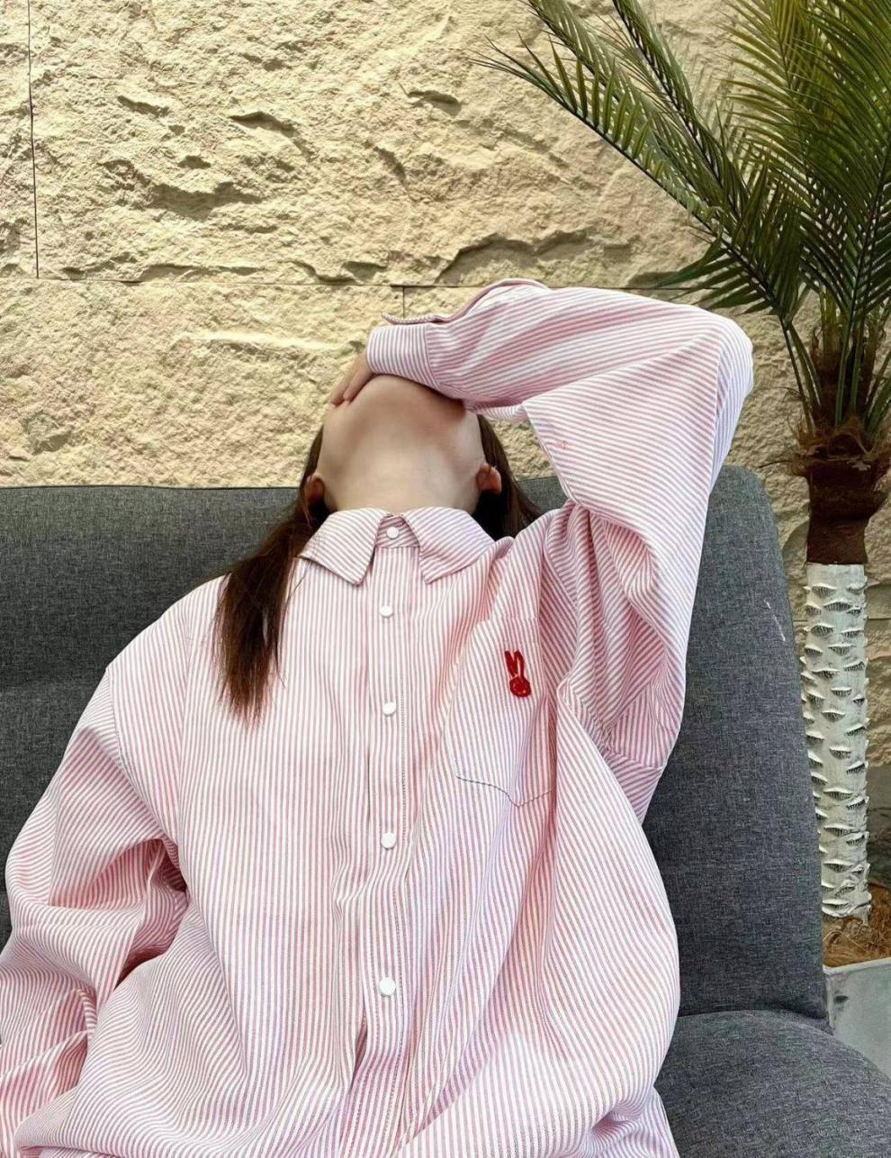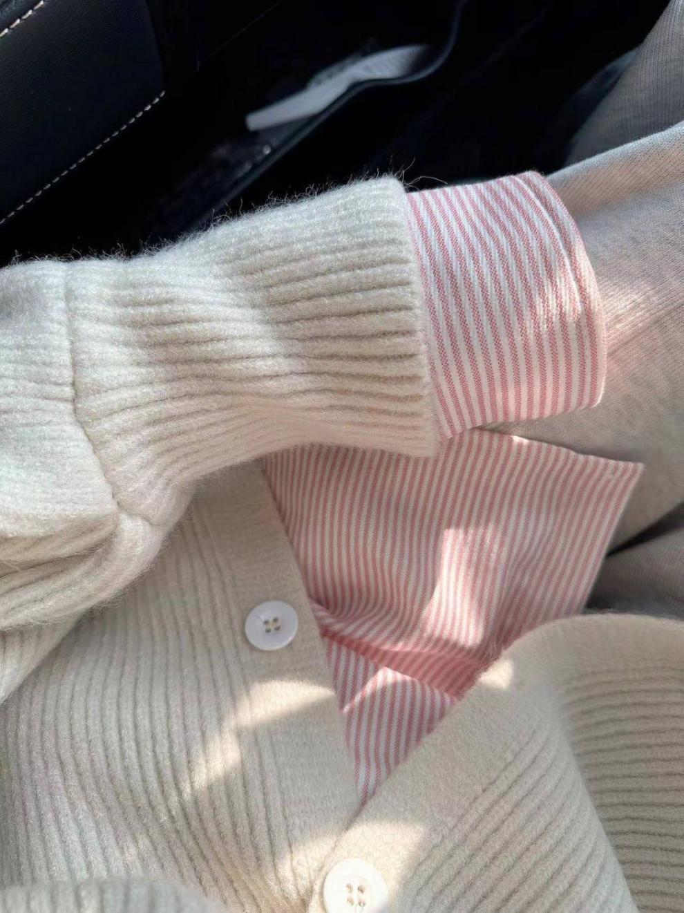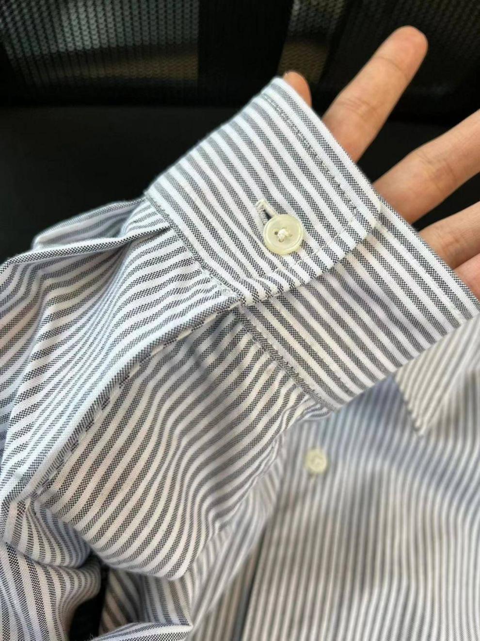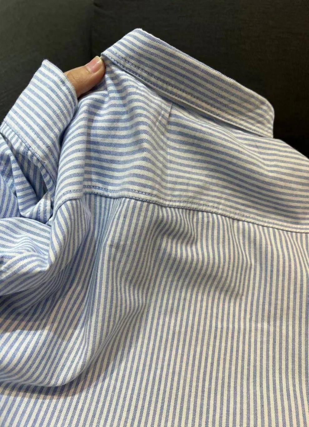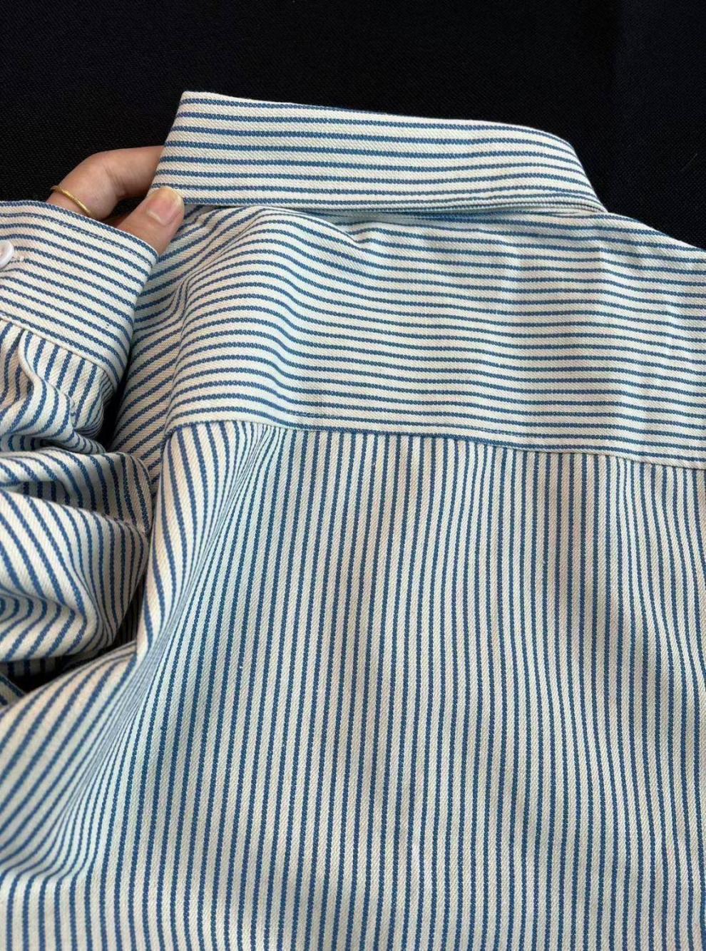 가벼운 럭셔리 레트로 스타일 코튼 그레이 스트라이프 셔츠 여성용 내부 쌓인 느슨한 올매치 슬림핏 긴소매 아우터 셔츠스토어 가기