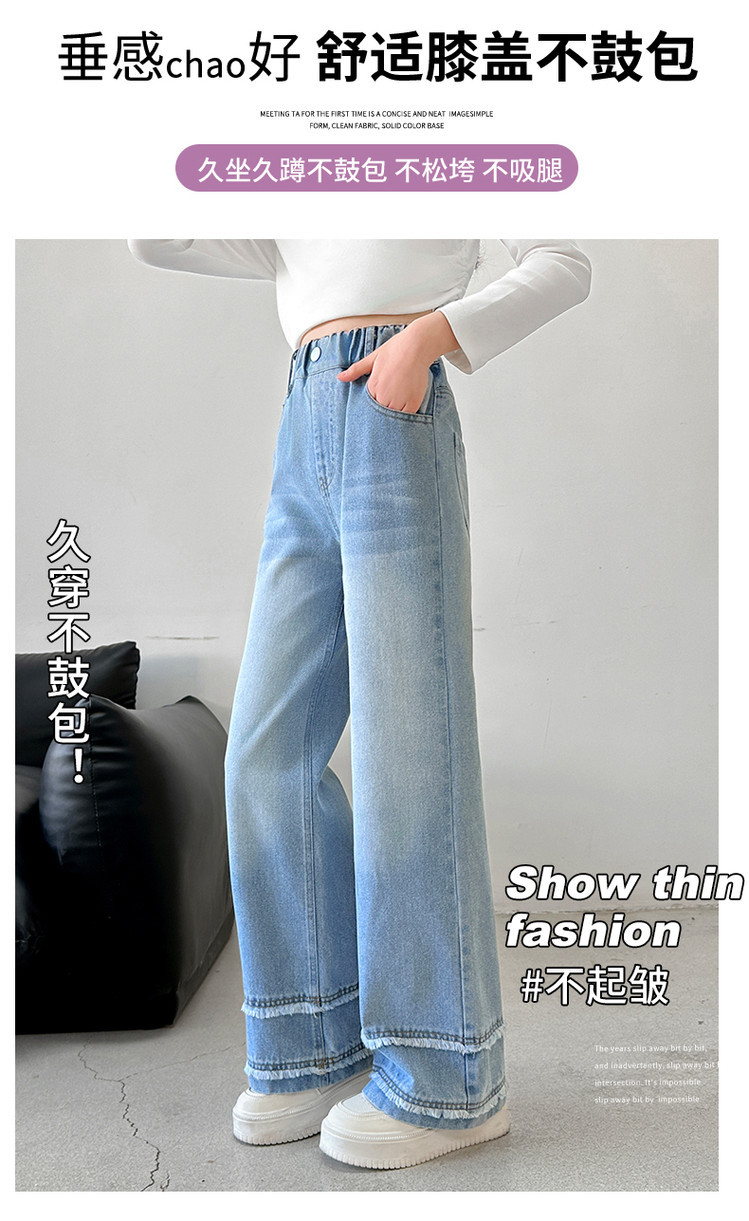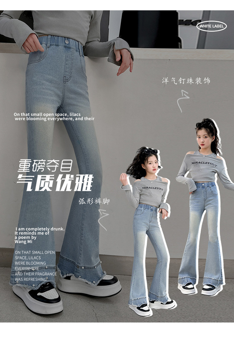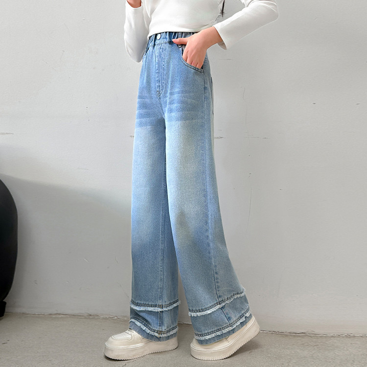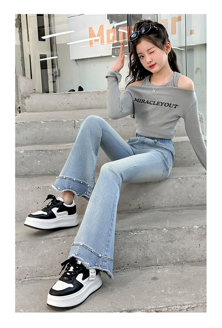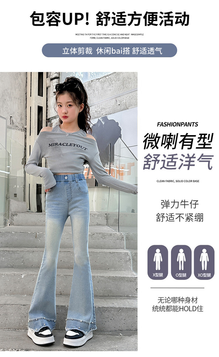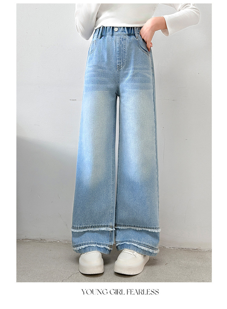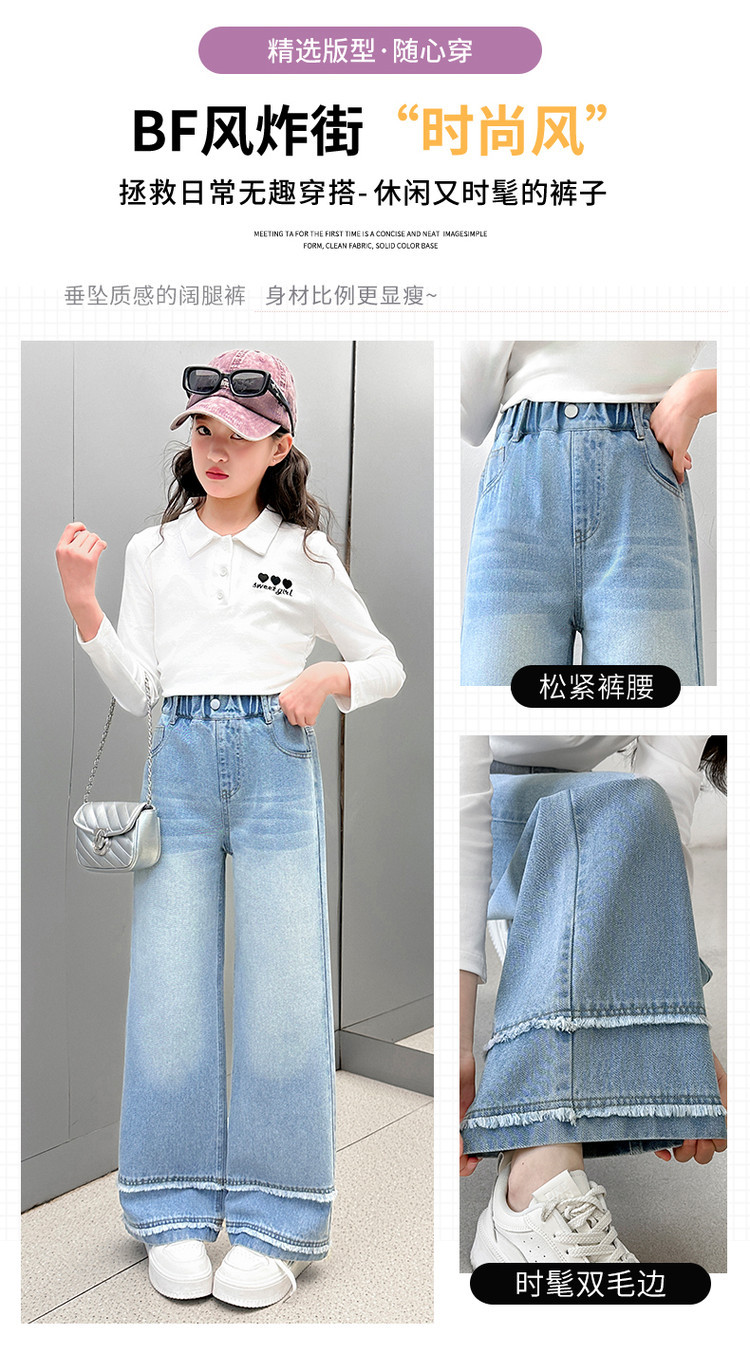 소녀의 봄과 가을 청바지 2025 새로운 어린이 슬림 핏 봄웨어 걸스 대형 어린이 곡선 모피 가장자리 경적 바지스토어 가기